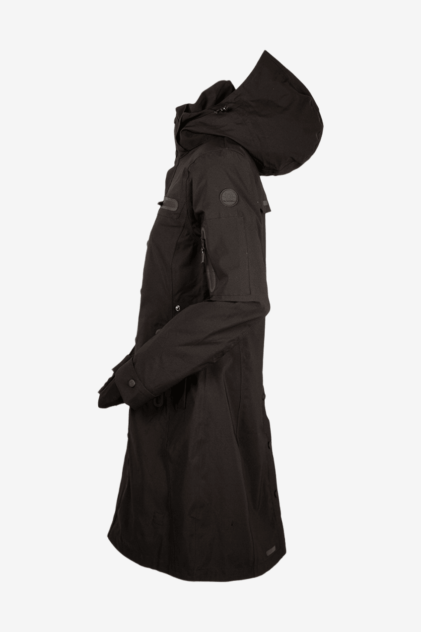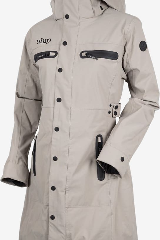 Uhips trenchkappor är till för dig som har höga krav på funktion och design. Tvåvägsdragkedjan fram och sprundet bak med knappar gör kappan funktionell även på hästryggen. De elastiska benbanden håller kappan på plats. Kappan har också nedvikbart ärmslut som skyddar hand och handske mot regn samt handledsskydd med hål för tummen.