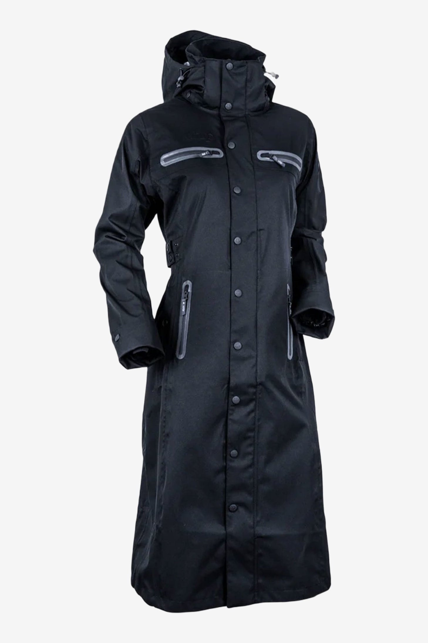 Uhips trenchcoats er til dig, der har høje krav til funktion og design. Den tovejs lynlås foran og sprækken bagpå med knapper gør kappen funktionel selv på hesteryg. De elastiske benstropper holder kappen på plads. Kappen har også nedfoldelige manchetter, der beskytter hånd og handske mod regn samt håndledsbeskyttere med hul til tommelfingeren.