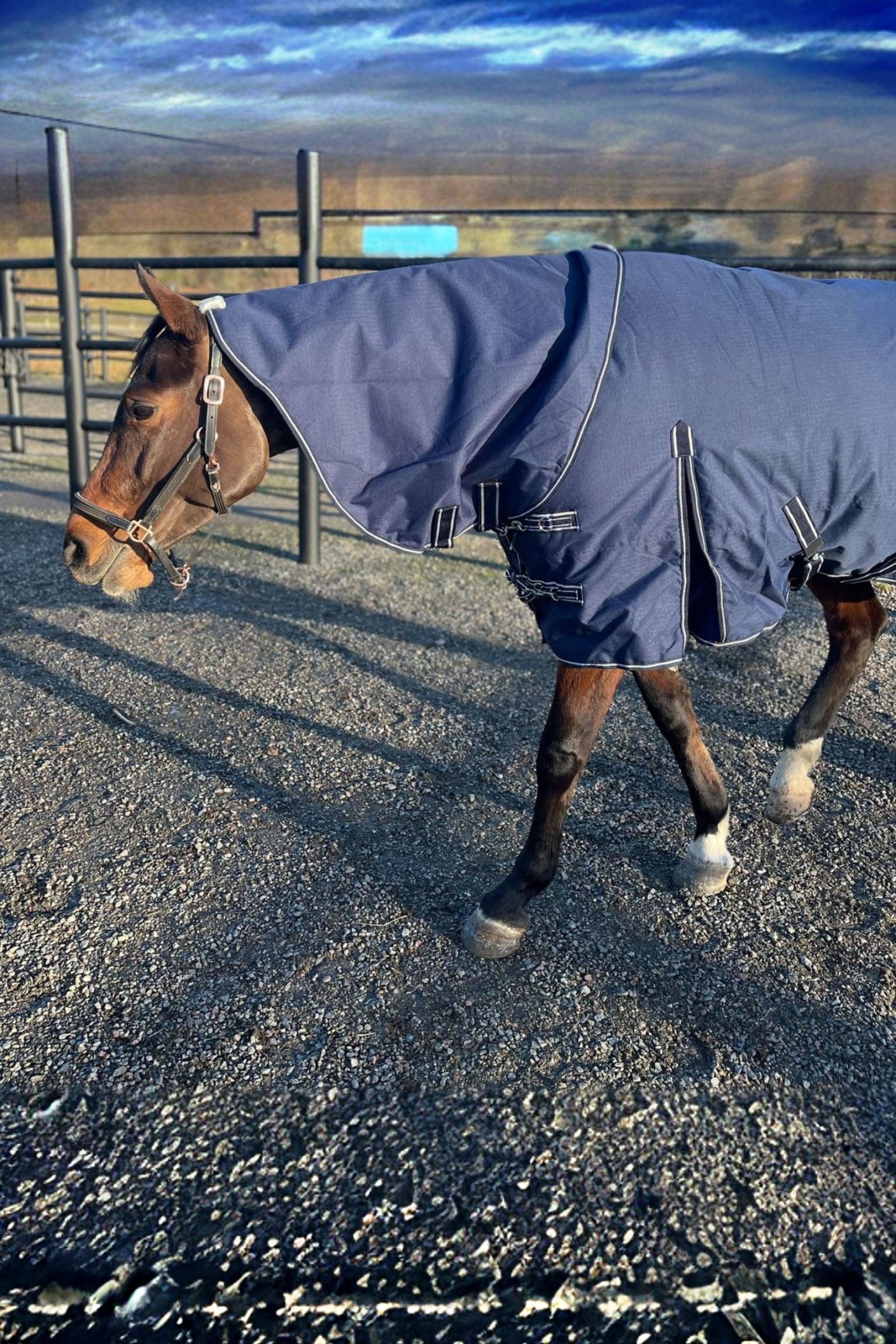 Udedækken med 200g fyld og aftagelig hals. 600 denier i ydermaterialet. Blank inderside, som gør dækkenet let at holde rent og mindsker risikoen for skav. Skulderfolder i siderne for øget bevægelsesfrihed og komfort for hesten. Krydsgjorde under maven samt benstropper bagtil, som holder dækkenet sikkert og på plads. Dobbelt spænder foran med pistolhager for nem justering af pasformen.