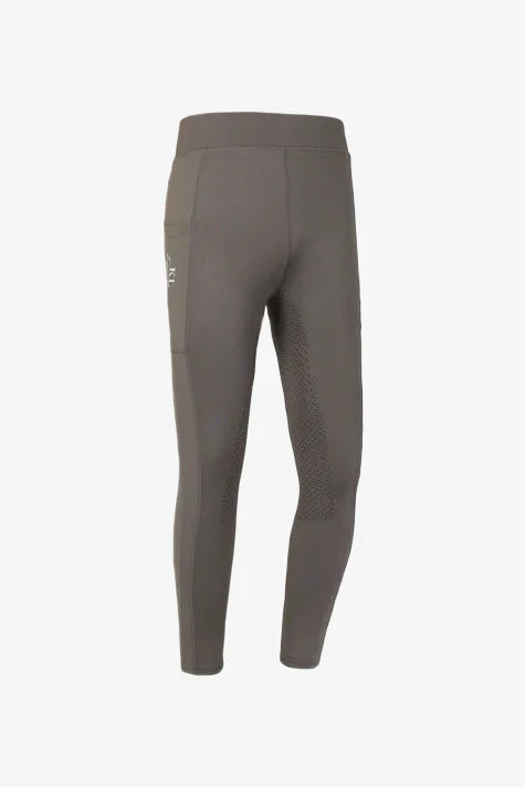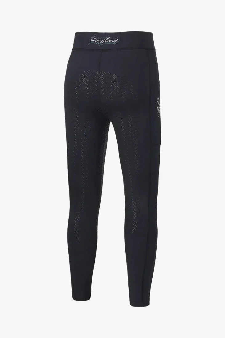 Kompressionsridebukser fra Kingsland SS23. Juniorvarianten af de bedst sælgende KLkarina ridebukser. KLkandy er et par helskoddede kompressionsridebukser, der er behagelige, flotte og bevarer deres pasform over tid. Fremstillet af et højkvalitets, åndbart stof. På højre ben er der en praktisk telefonlomme. Bukserne egner sig lige godt til at ride din pony som til at lege med vennerne. Bagpå findes også Kingslands stilfulde logo på linningen.