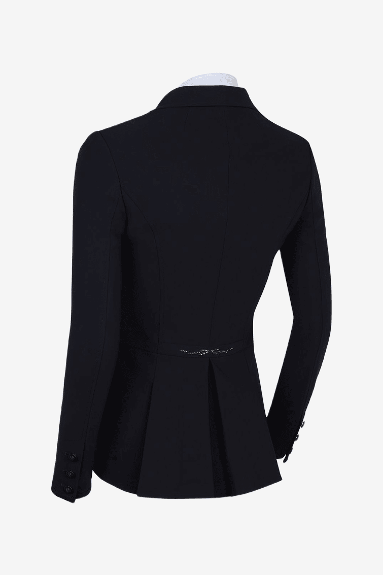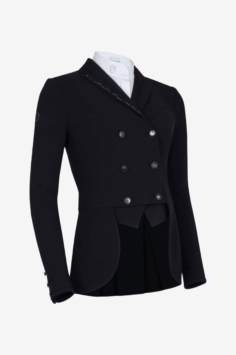 Smuk kort frack fra Samshield. Fracken er designet til rytterens komfort og bevægelsesfrihed. Den figursyede model giver et pænt indtryk.