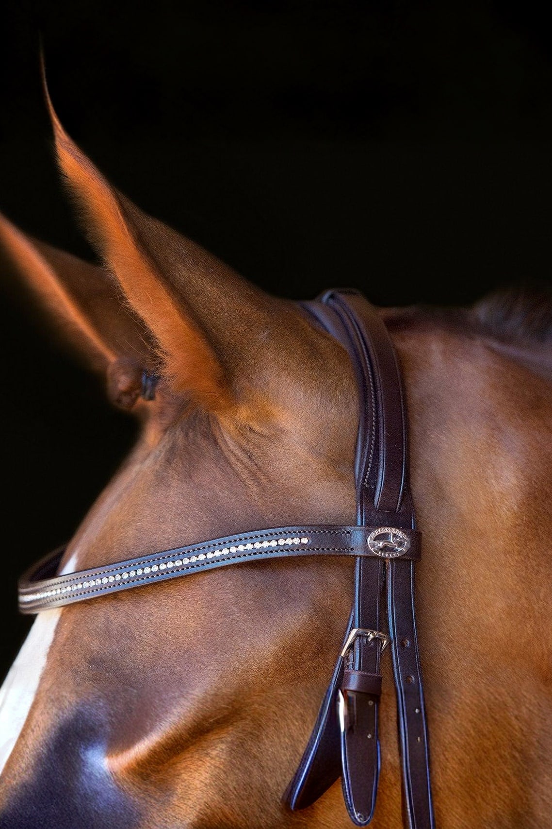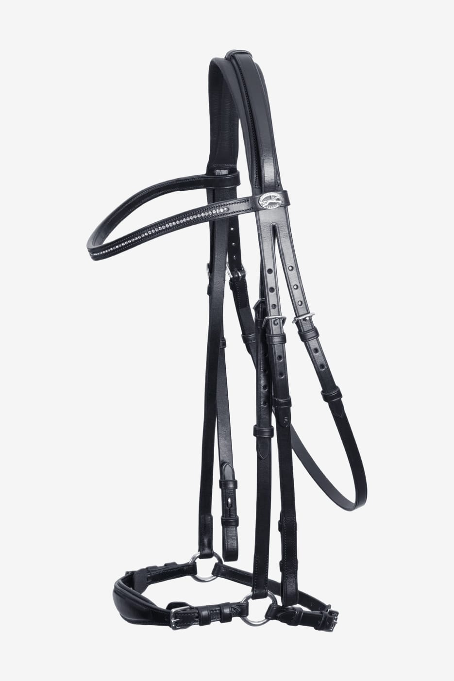 Superfint trense fra Schockemöhle i blødt og smidigt læder med remontnæsebånd. Næsebåndet kan justeres med dobbelte spænder, hvilket giver den en ultimativ pasform. Kæberemmen er justerbar fra begge sider. Diskret pandebånd med strassrække giver trensen et mere eksklusivt look.