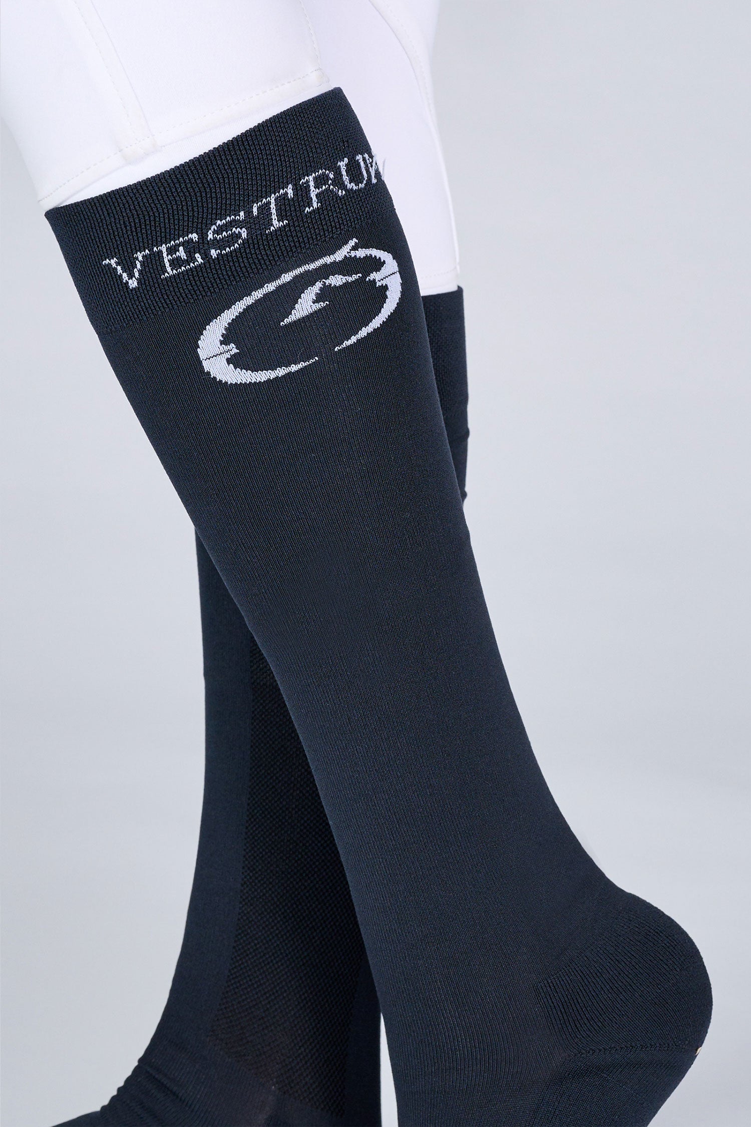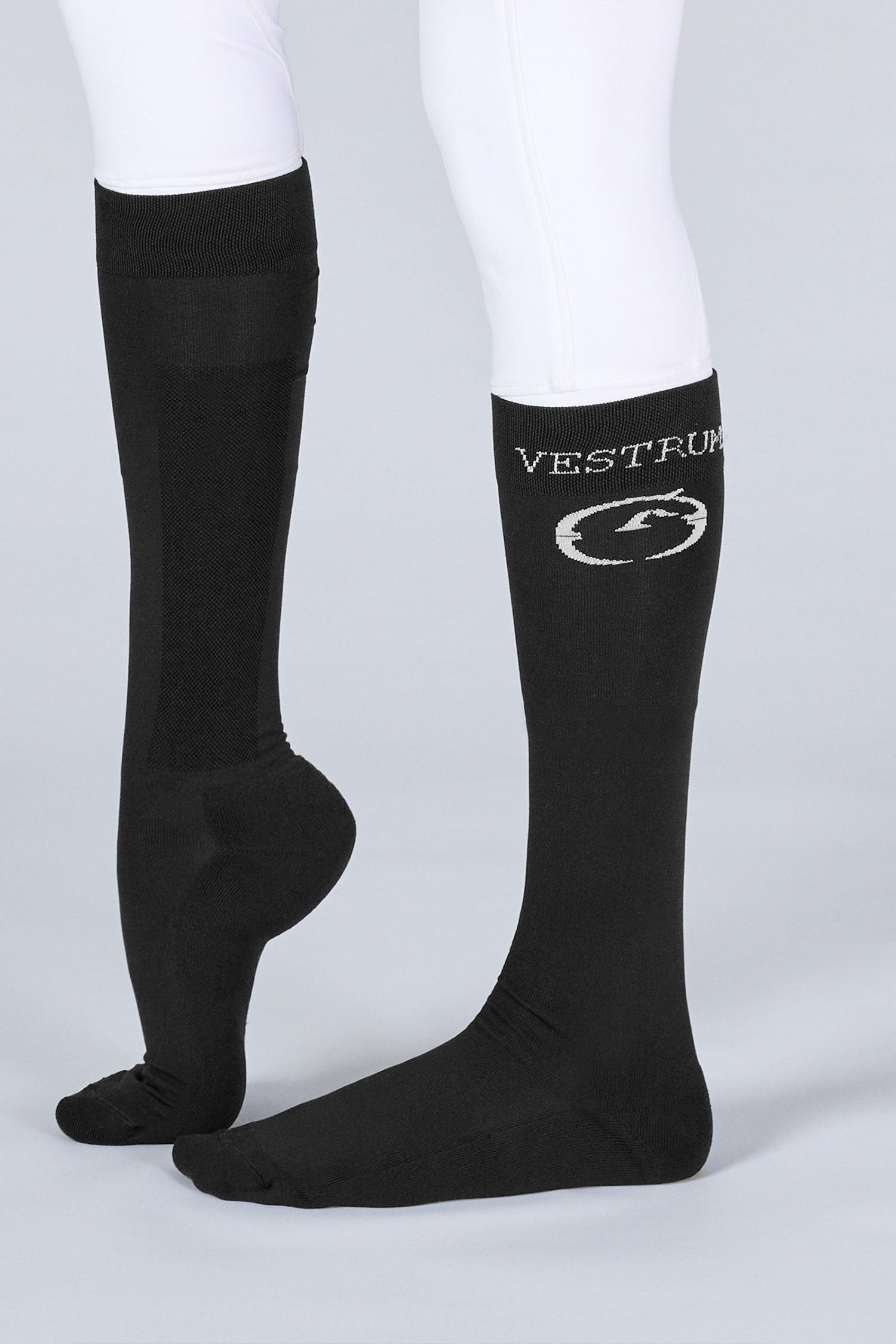 Stilvolle, dünne und bequeme Reitsocken der italienischen Marke Vestrum für Damen und Herren. Vestrum-Logo und Schriftzug am oberen Schaft.