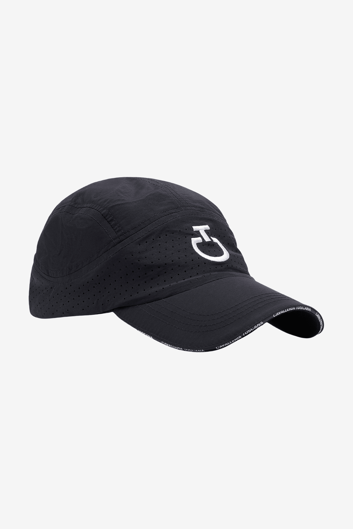 Kappe von Cavalleria Toscana. Die Kappe besteht aus leichtem Nylon mit einem Mesh-Einsatz für maximalen Komfort und Belüftung sowie einem gebogenen Schirm, der vor Sonnenstrahlen schützt. Hinten befindet sich ein Riemen, mit dem sich die Passform einfach anpassen lässt. Schön bestickt mit dem CT-Logo auf der Vorderseite und auch der Schirm trägt das Cavalleria Toscana Logo.