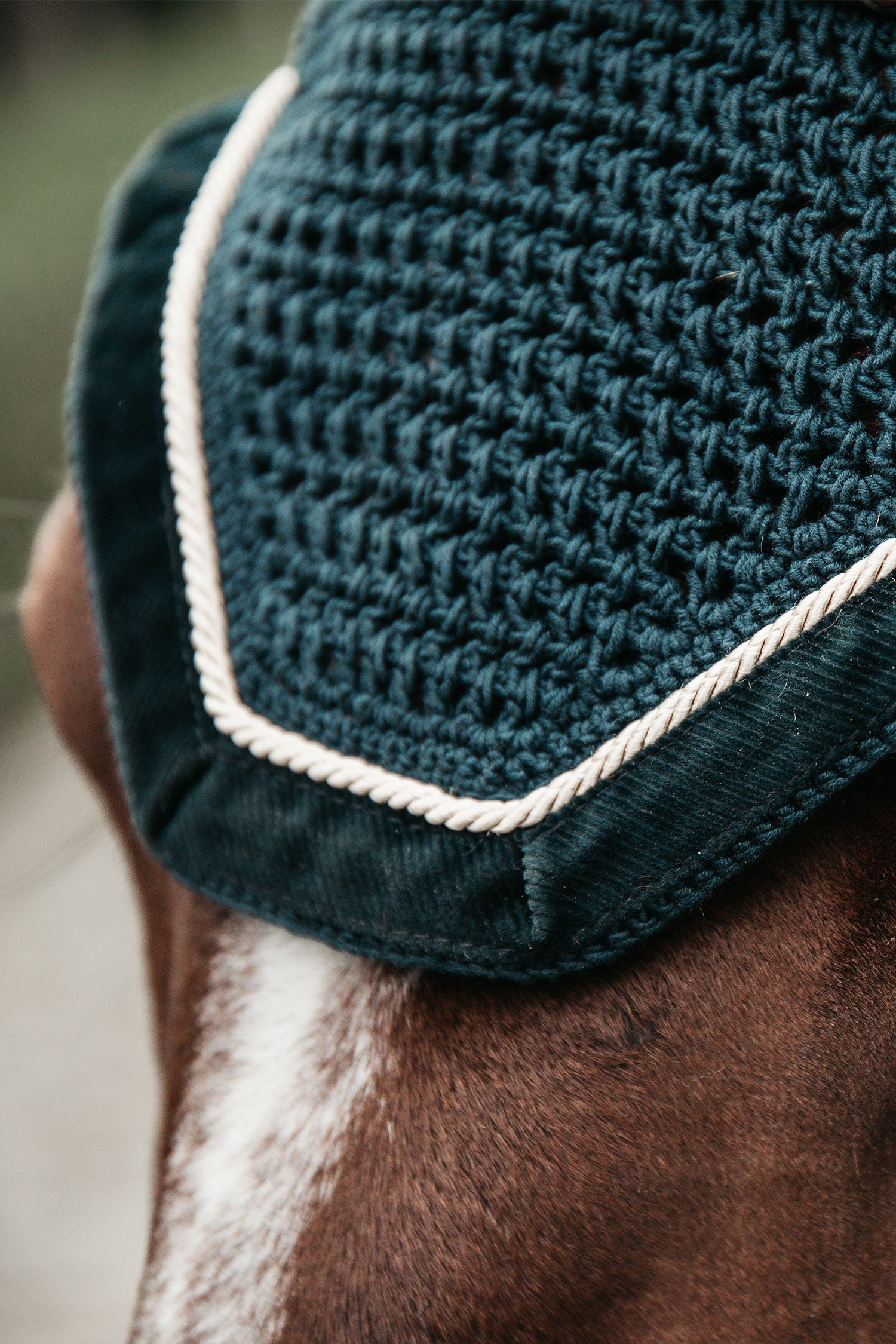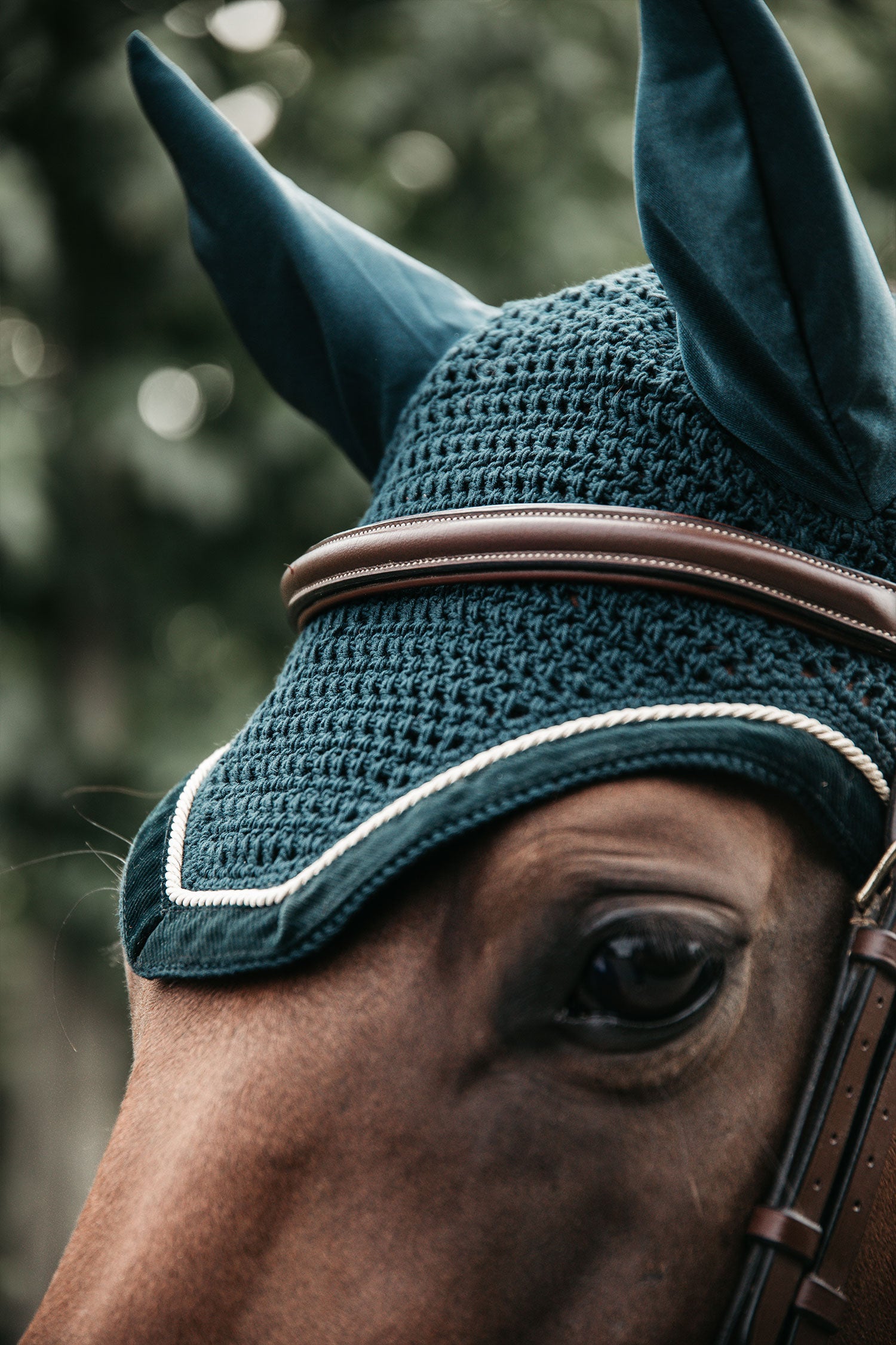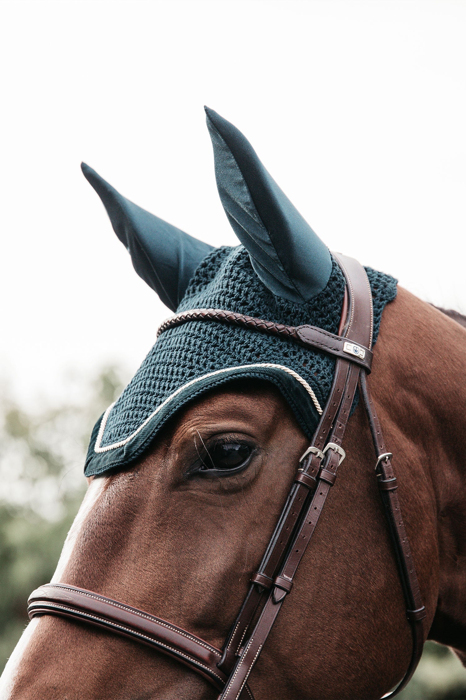 - Fliegenschutz gegen lästige Insekten an den Ohren des Pferdes.