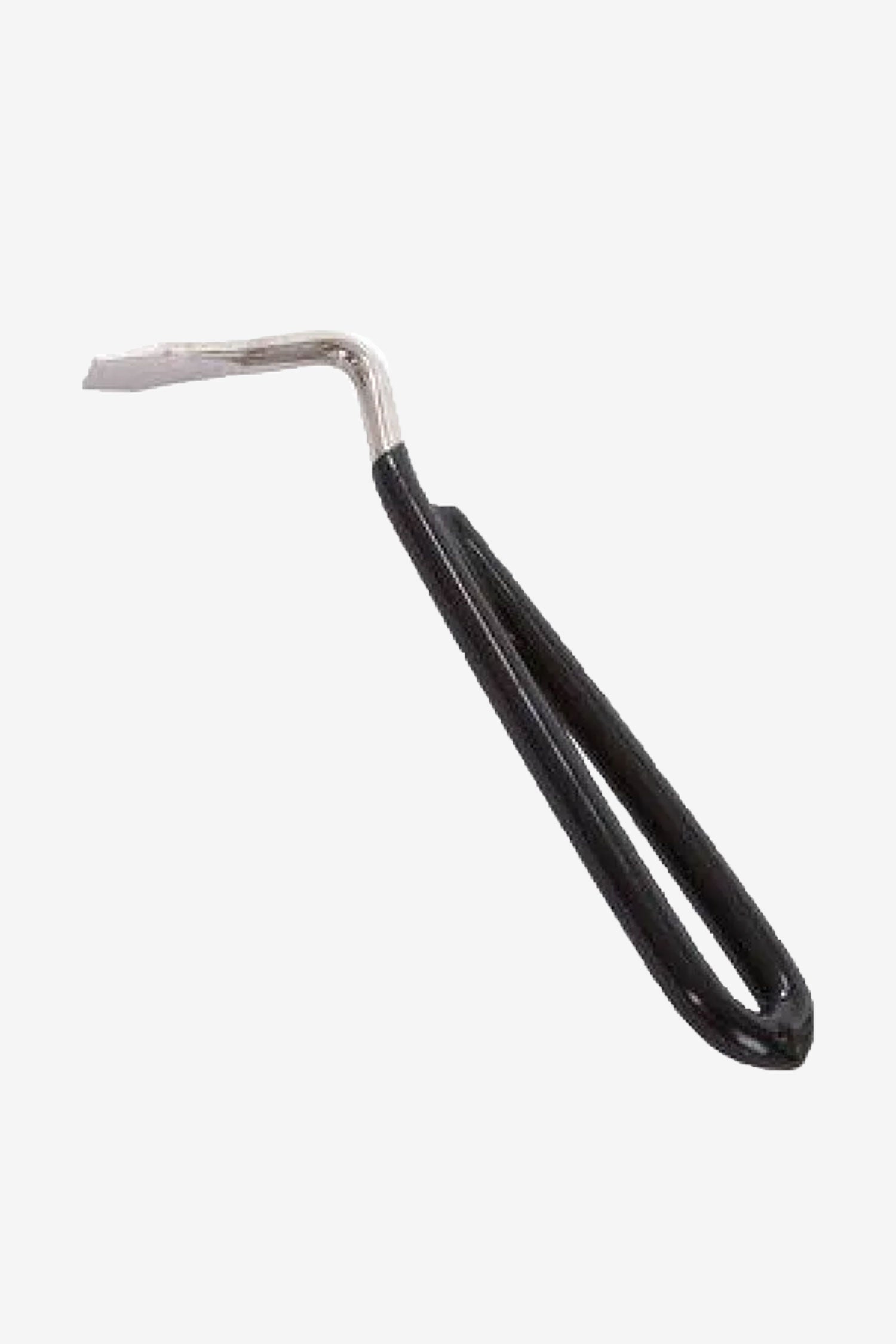 Einfacher Hufauskratzer aus Stahl mit einer griffigen Vinyl-Ummantelung für einen angenehmeren Halt.