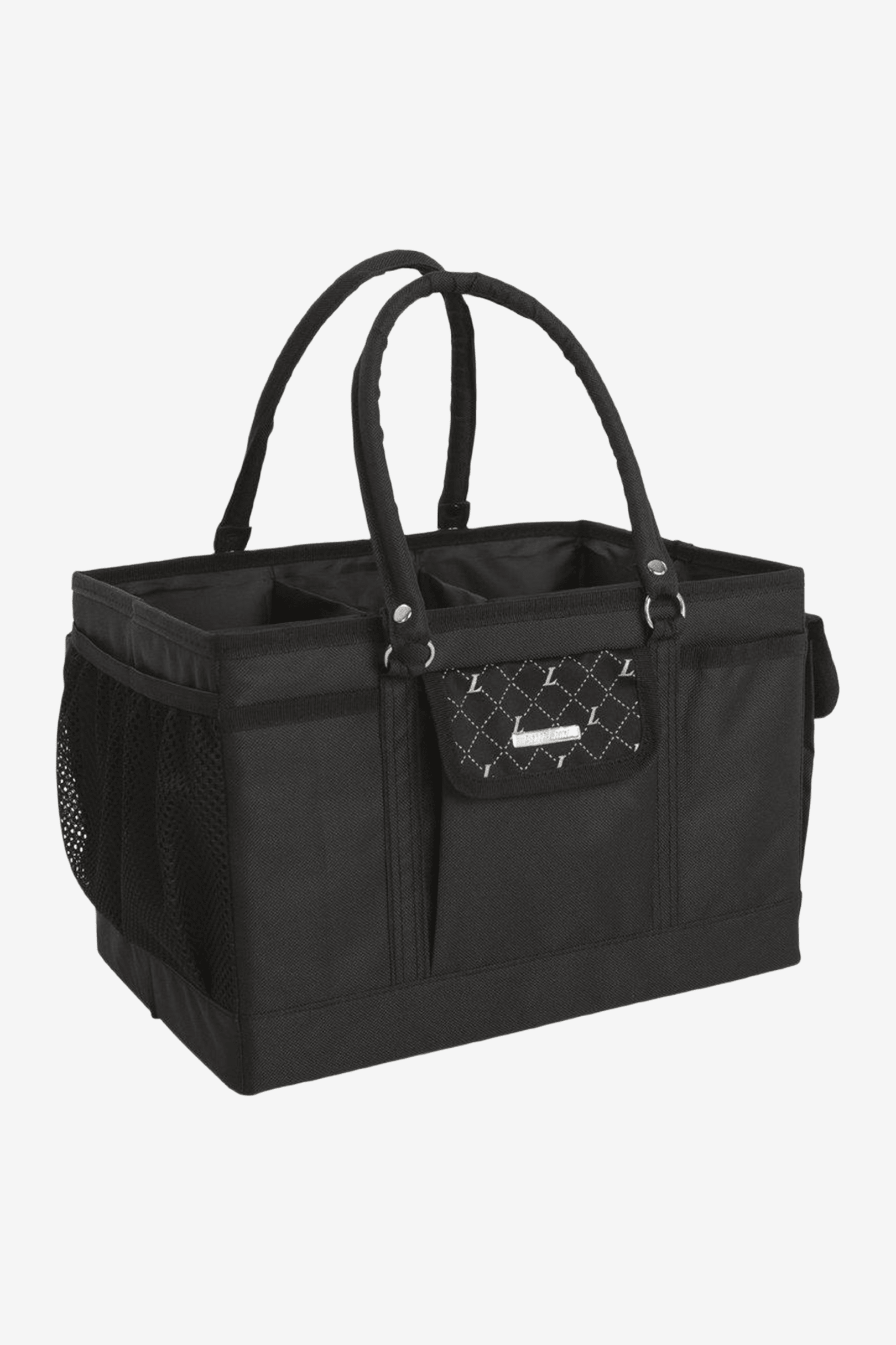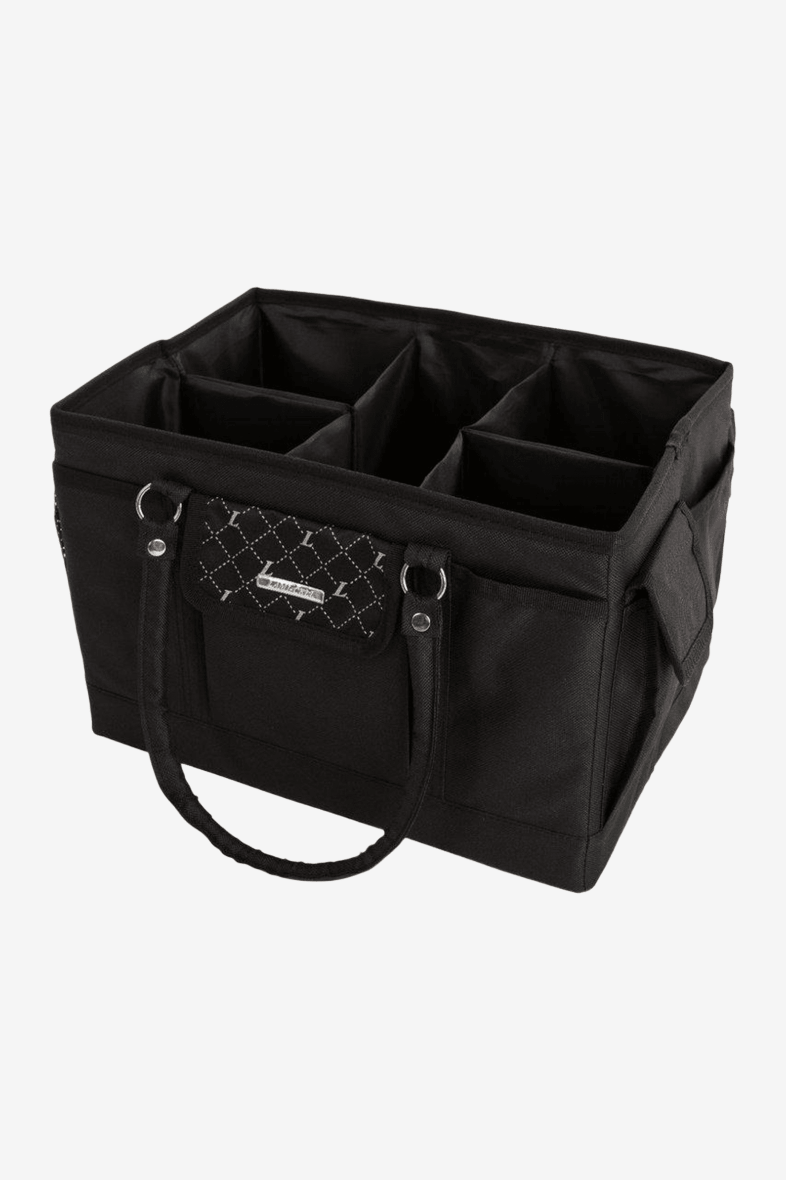 Stilvolle und geräumige Putzzeugtasche von Lami-Cell mit viel Platz für alle Bürsten und Reinigungsprodukte. Robuste Griffe machen sie einfach zu tragen. Viele praktische Taschen helfen dir, deine Kleinteile ordentlich zu verstauen. Auch Fächer an der Außenseite, mit sowohl Reißverschluss als auch Klappe, die mit Klettverschluss schließt.