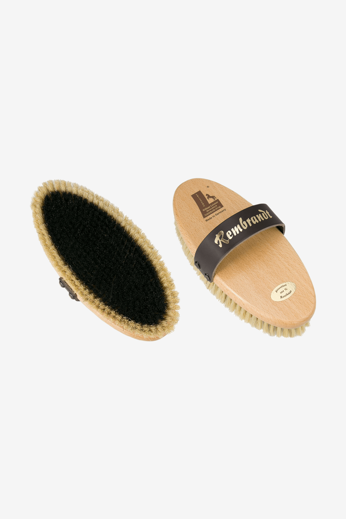 Die perfekte Striegelbürste aus echtem Rosshaar. Dieses Modell hat eine mittelweiche Härte. Sie vereint hervorragendes Bürsten mit einem angenehmen Massageerlebnis für Ihr Pferd. Leichter Schmutz wird mit hochwertigem Rosshaar in der Mitte der Bürste leicht entfernt, während zwei höhere äußere Lagen aus Schweineborsten den letzten Staub aufnehmen und für einen schönen Glanz sorgen.