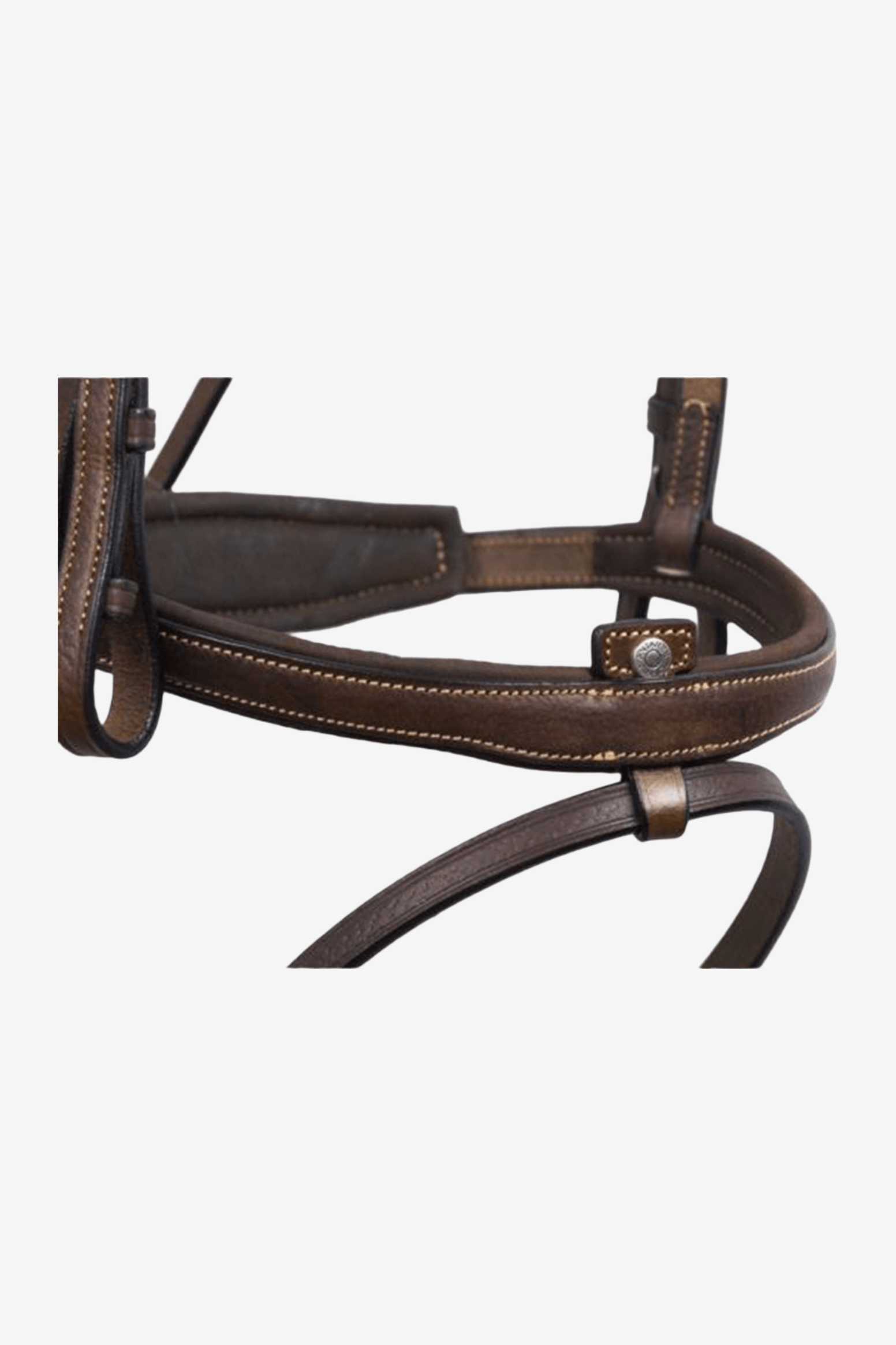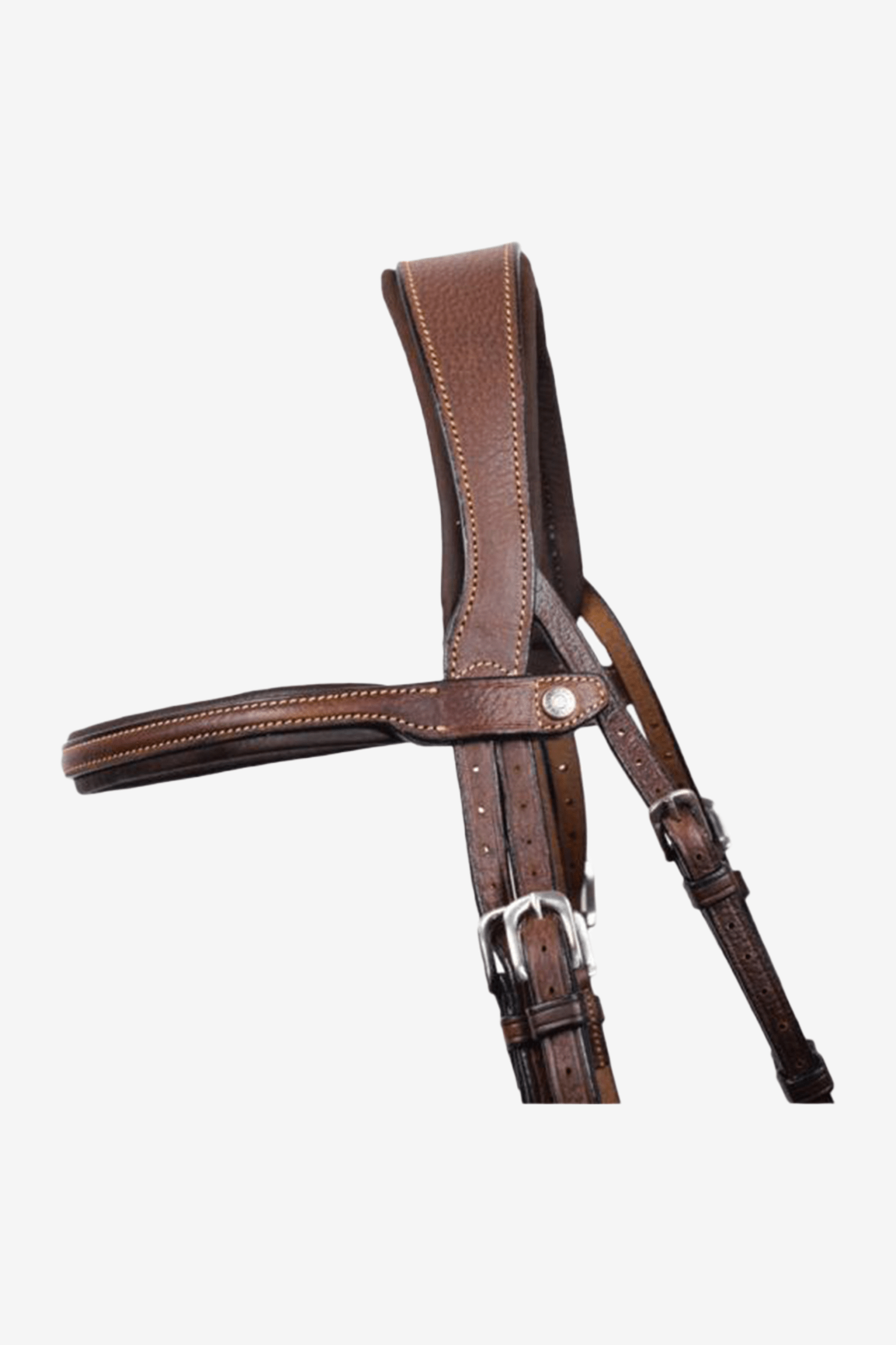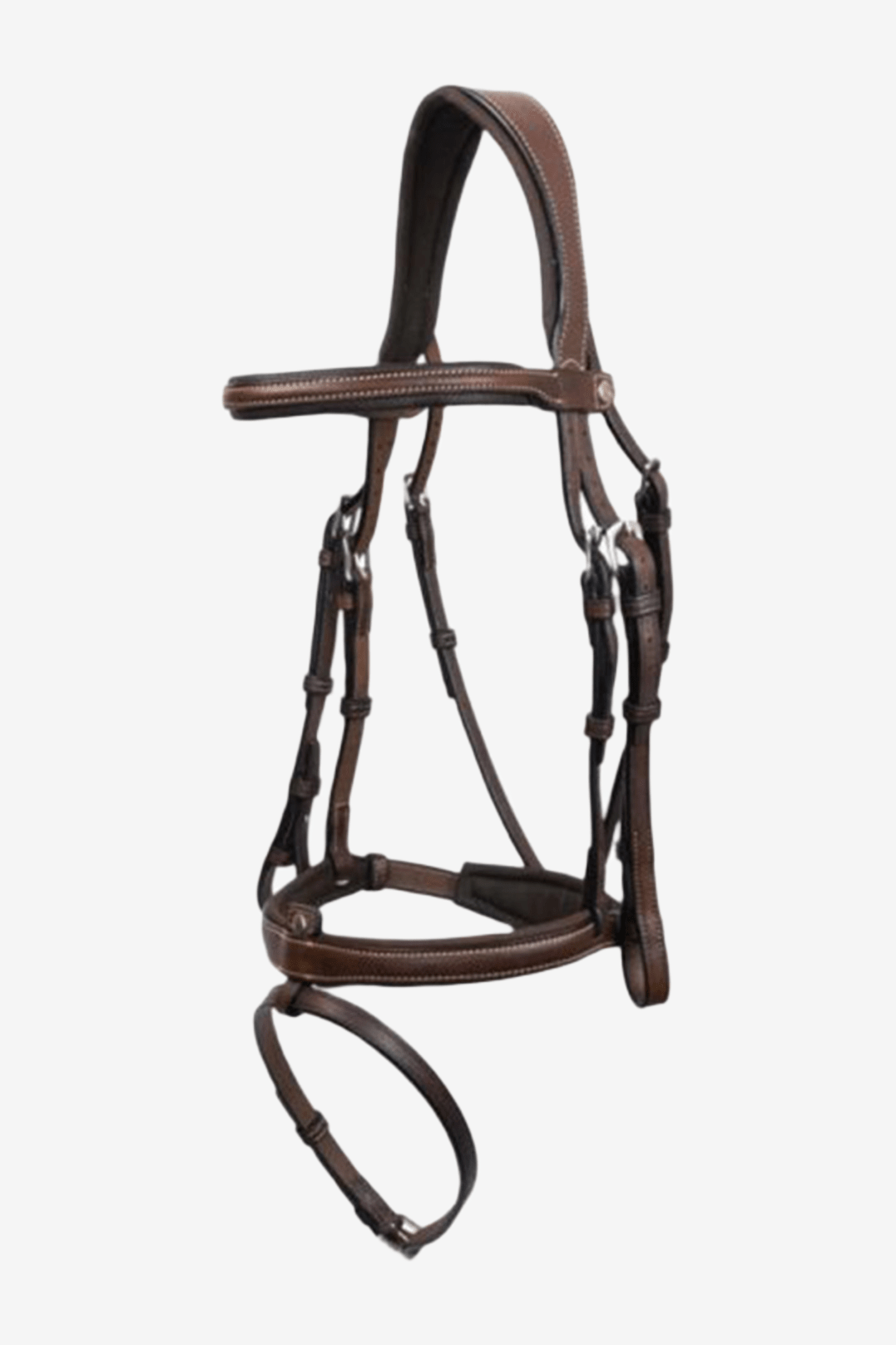 Fint och mjukt träns från Antares gjort av franskt läder. Tränset har ett anatomisk nackstycke som är vadderat. Även den kombinerade nosgrimman är vadderad. Tränset har också en speciell käkrem för att minska trycket på hästens huvud.