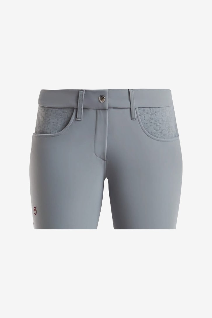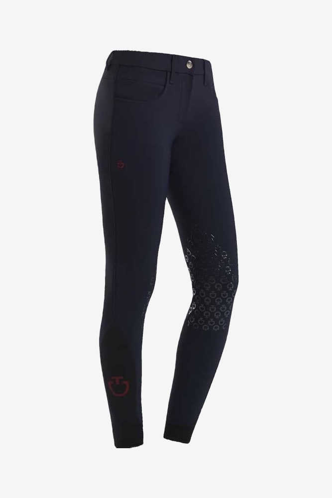 Der Bestseller von Cavalleria Toscana mit niedrigem Bund in klassischem Marineblau mit perforierten Taschen und Rückseite unter dem Bund. Stilvolle und klassische Reithose aus unglaublich bequemem Bi-Stretch-Material mit schnelltrocknender und antibakterieller Funktion. Herrlich dehnbar mit normaler Taille und elastischen Beinabschlüssen mit Logo. Logotyp auf dem rechten Bein in elegantem Burgunderrot.