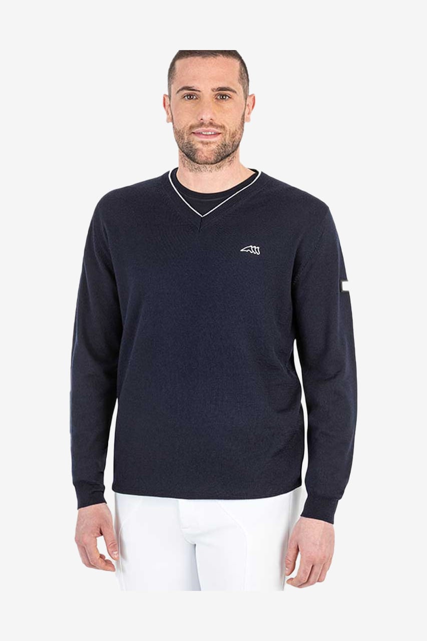 Stilren v-ringad pullover med liten Equline-logga på bröstet. Supermjuk och stretchig tröja som ger en elegant look