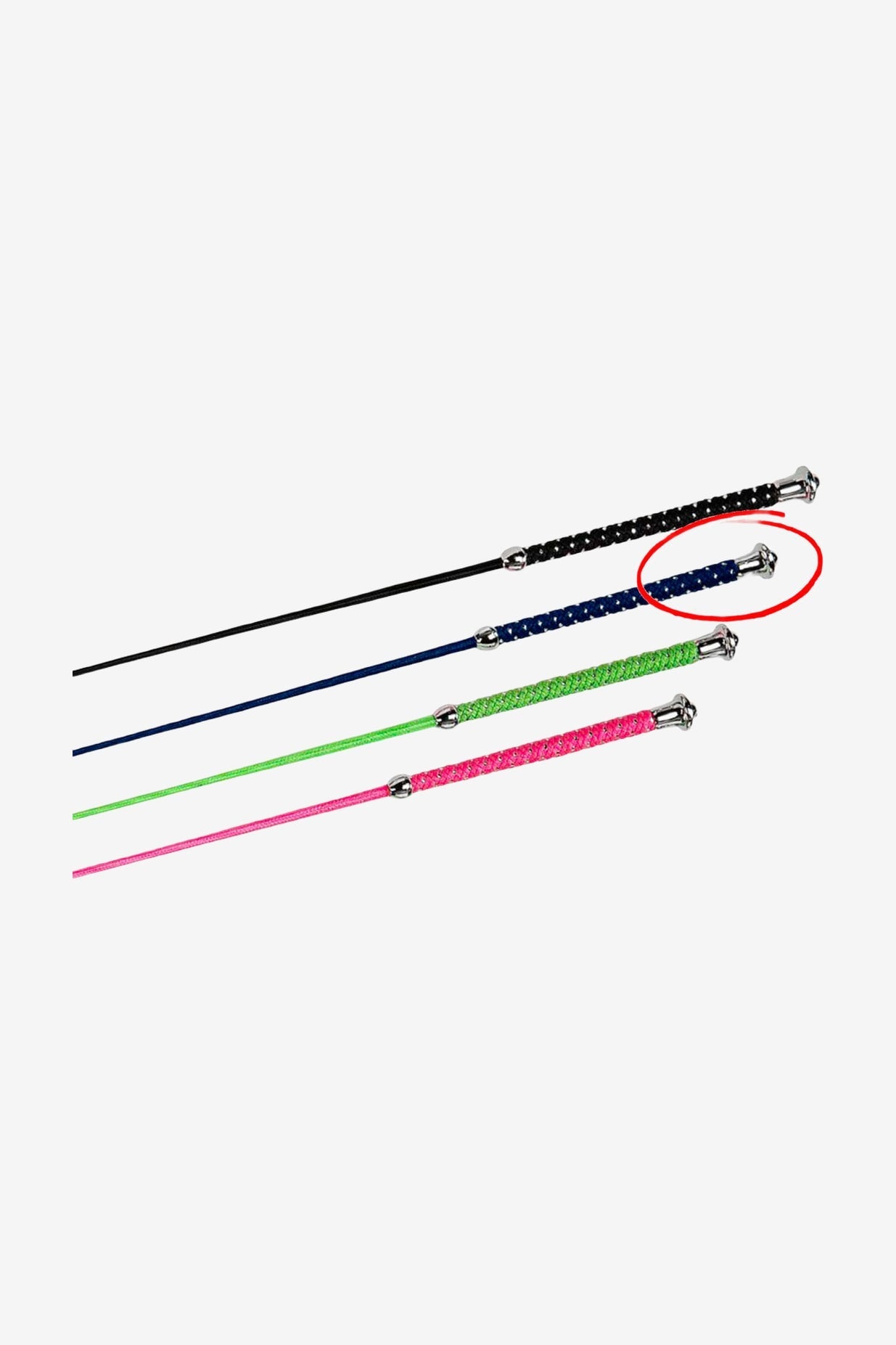 Nylon-ummantelter Glasfaserkern mit Griff aus Nylon/Silber und silbernem Knauf.