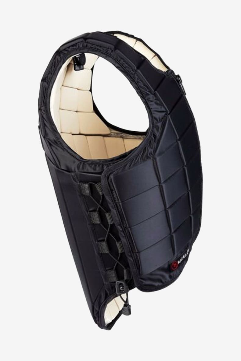Die Sicherheitsweste ist für das Reiten konzipiert und mit einem Paneelsystem sowie einer seitlichen Schnürung ausgestattet, um eine optimale Passform zu gewährleisten.