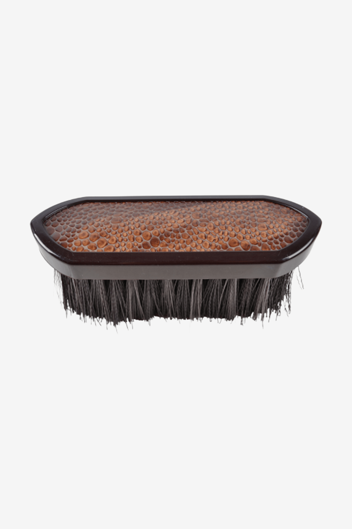 Bürste aus Nylon mit 7 cm langen synthetischen Borsten in zweifarbigem, ton-in-ton Design. Mit Krokoprägung auf der Rückseite aus Kunststoff.