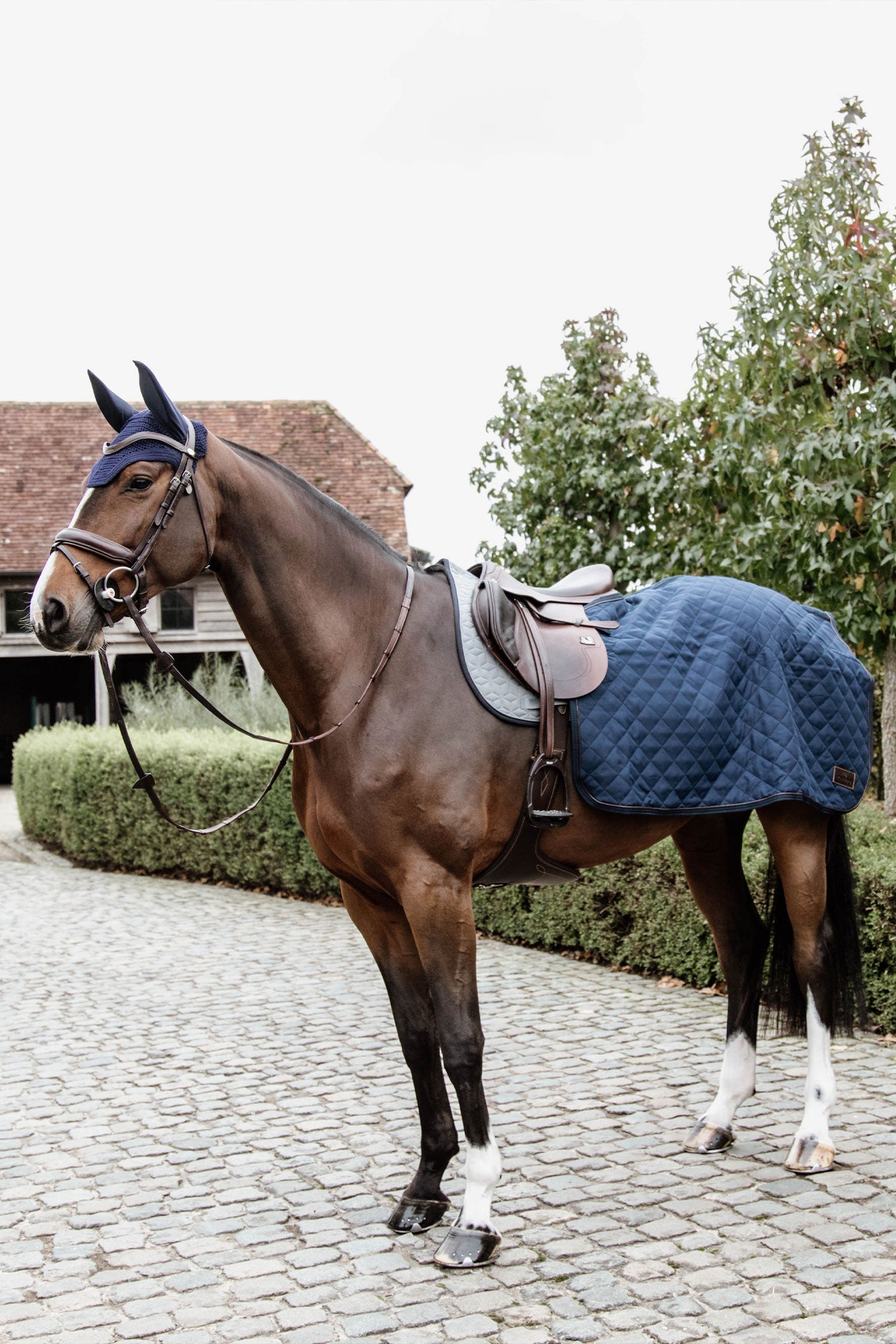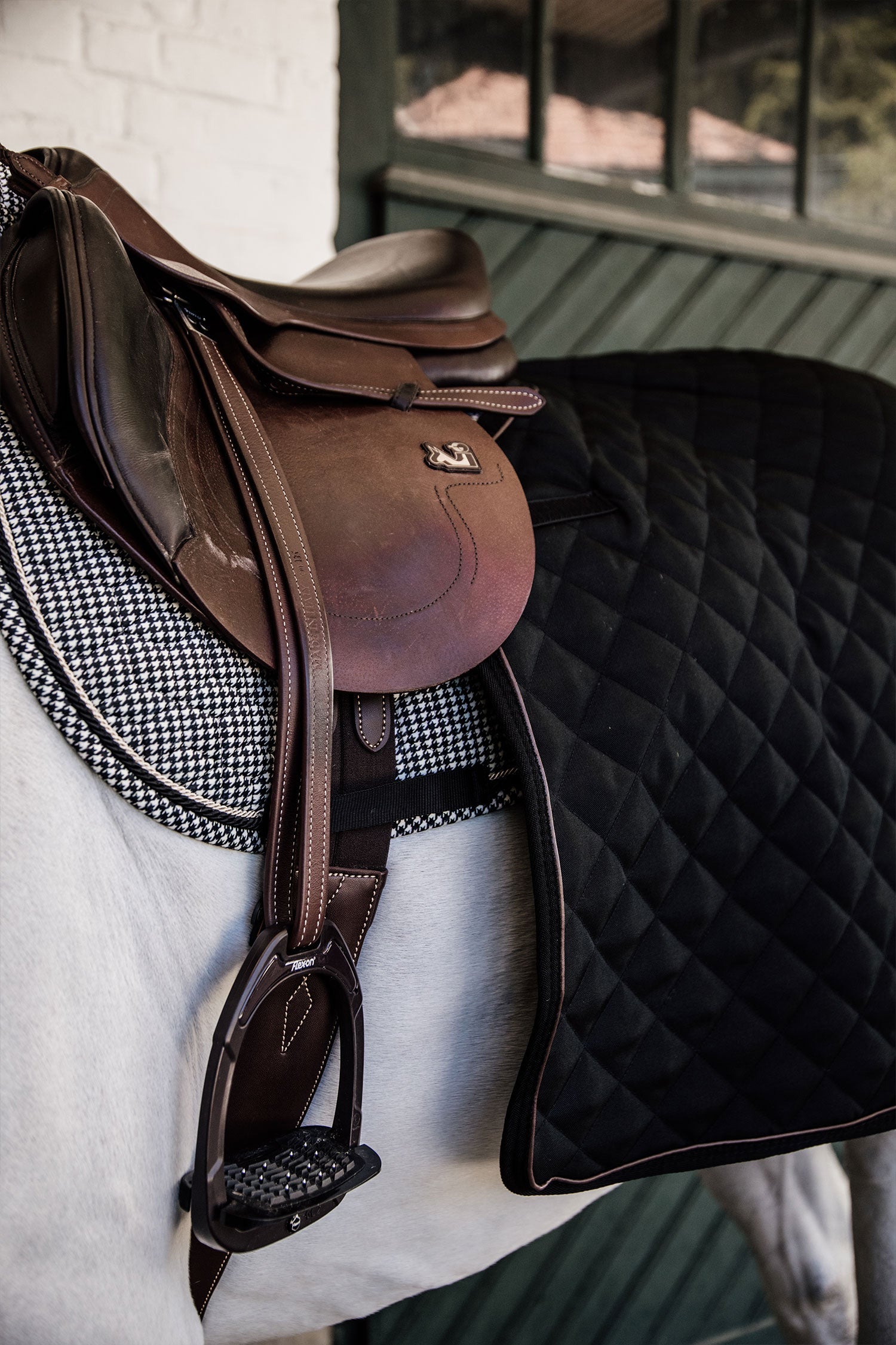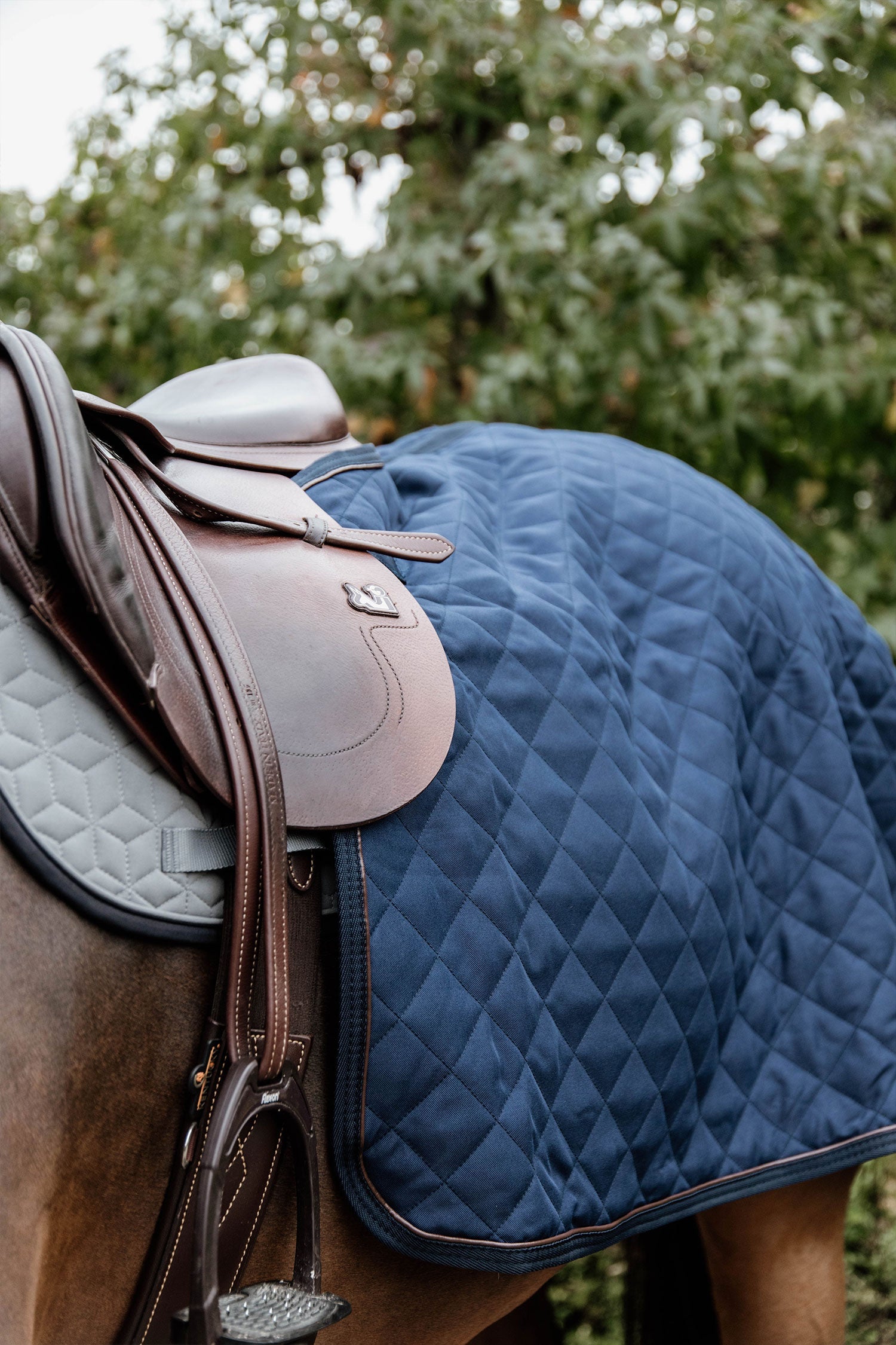 The quarter rug has Velcro straps that attach to the saddle straps, as well as a tail strap.