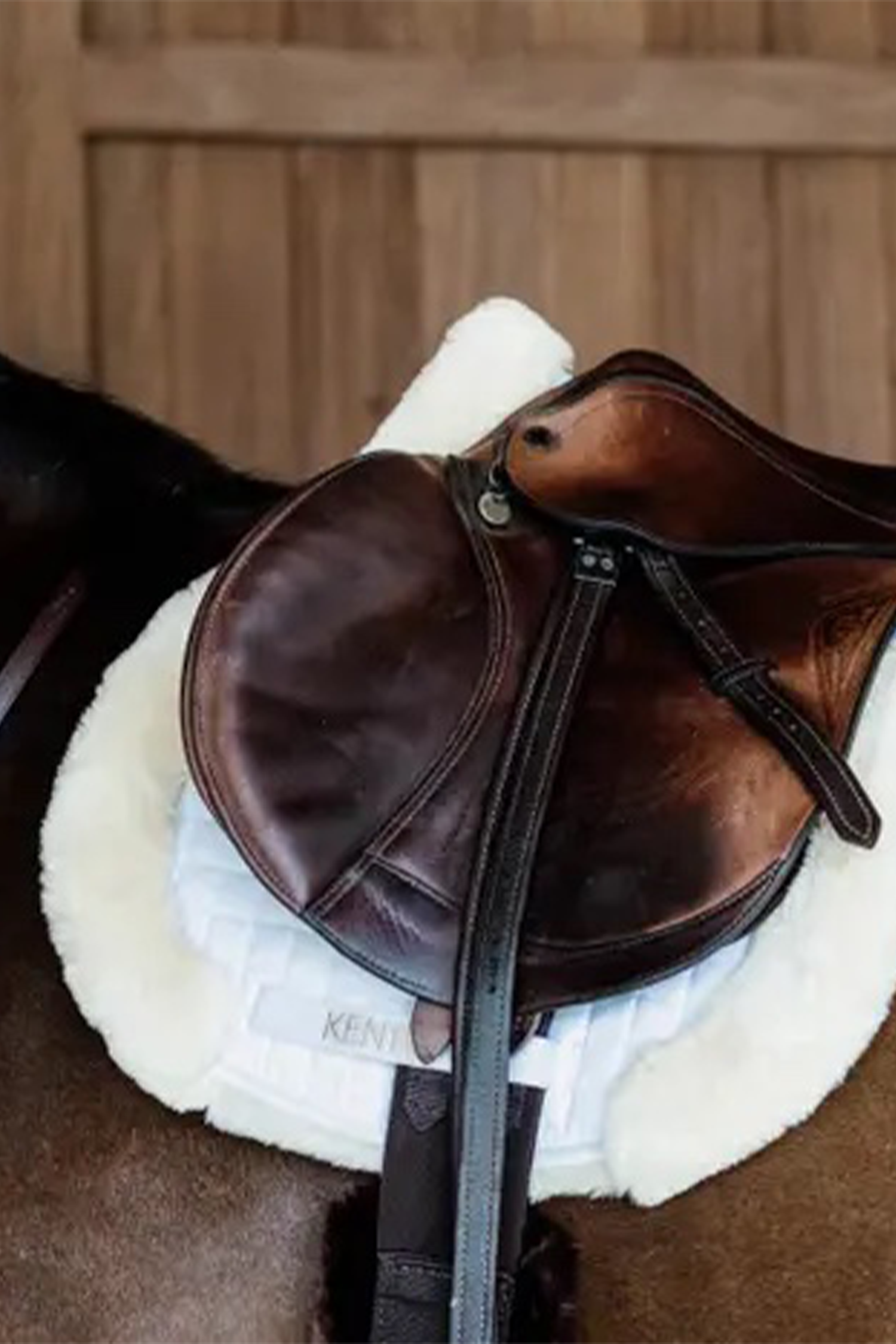Hunter saddle pad in vegan sheepskin reduces pressure points, helps regulate heat, and reduces friction. Provides maximum comfort and an elegant Hunter style.