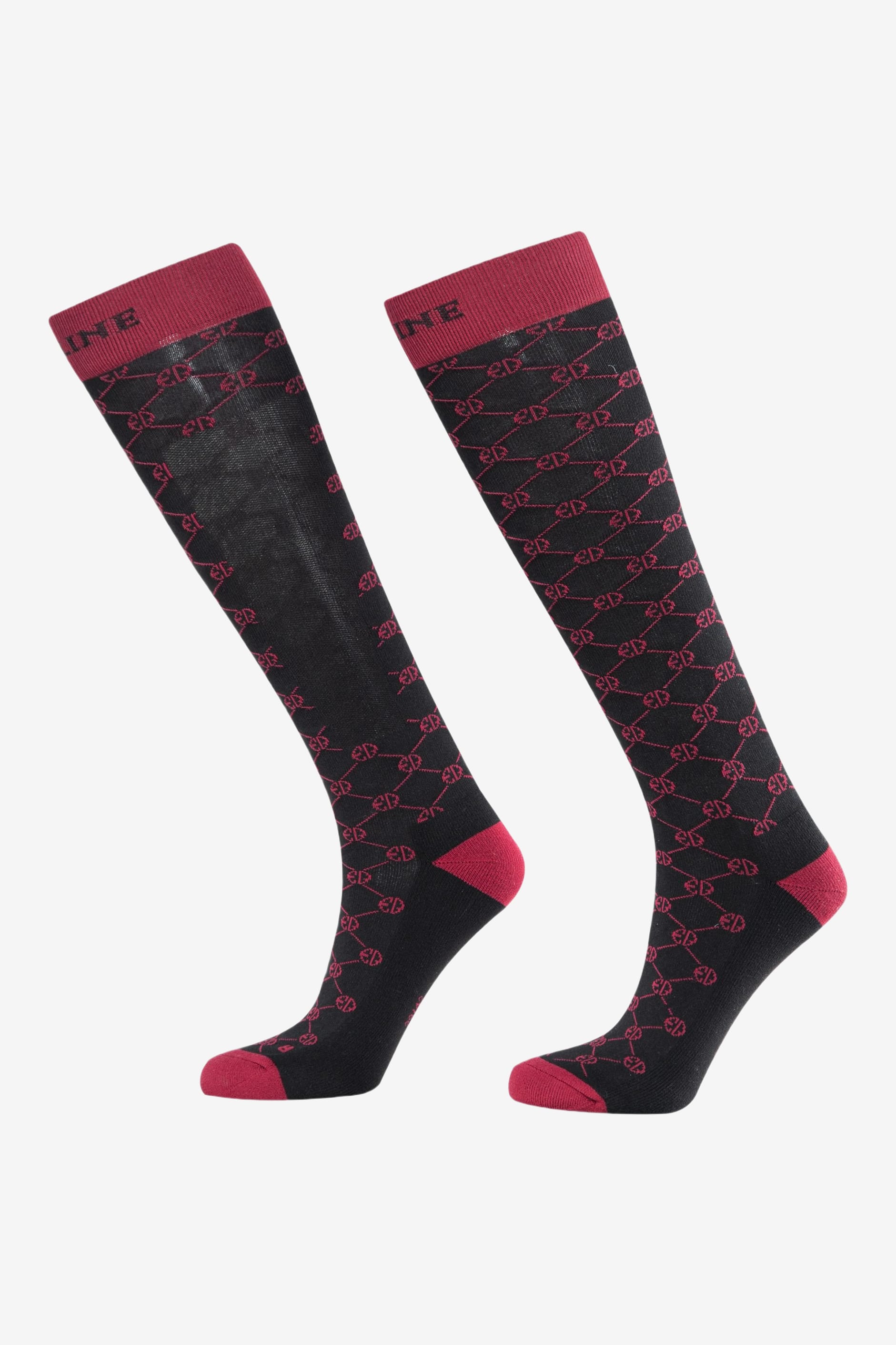 Knee socks from Equiline. Nicely detailed with a logo on the entire sock. Equiline Logo Sock is a classic riding sock with a reinforced foot.