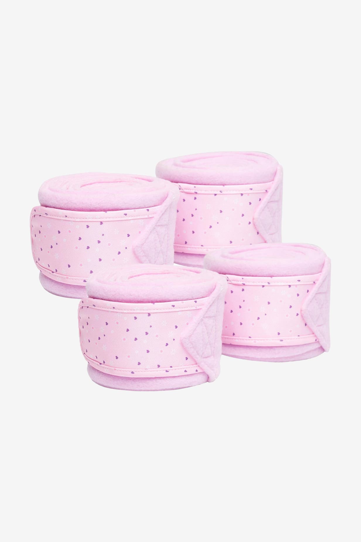 Super cute fleece bandages in pink with velcro fastening, sweetly detailed with hearts.