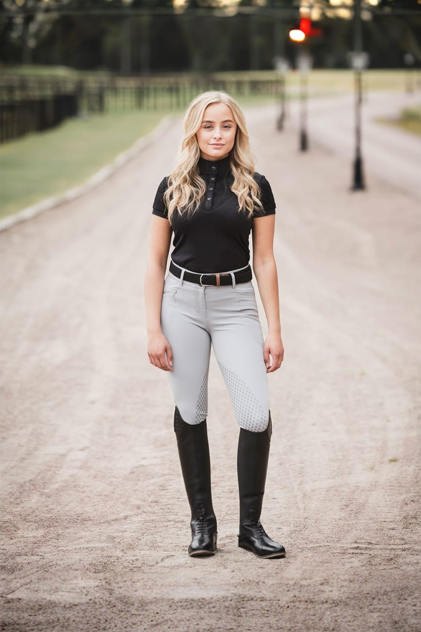 Stella from Horselife is made of Micro-X polyester/elastane. Micro-X polyester/elastane is a lightweight and functional material that gives you as a rider freedom of movement and comfort. Stella has a regular high waist, is saddle-cut with a silicone inner side, two front pockets of which one has a zipper. Leg ends in lycra. An incredibly comfortable and stylish pair of breeches that suits everyone.