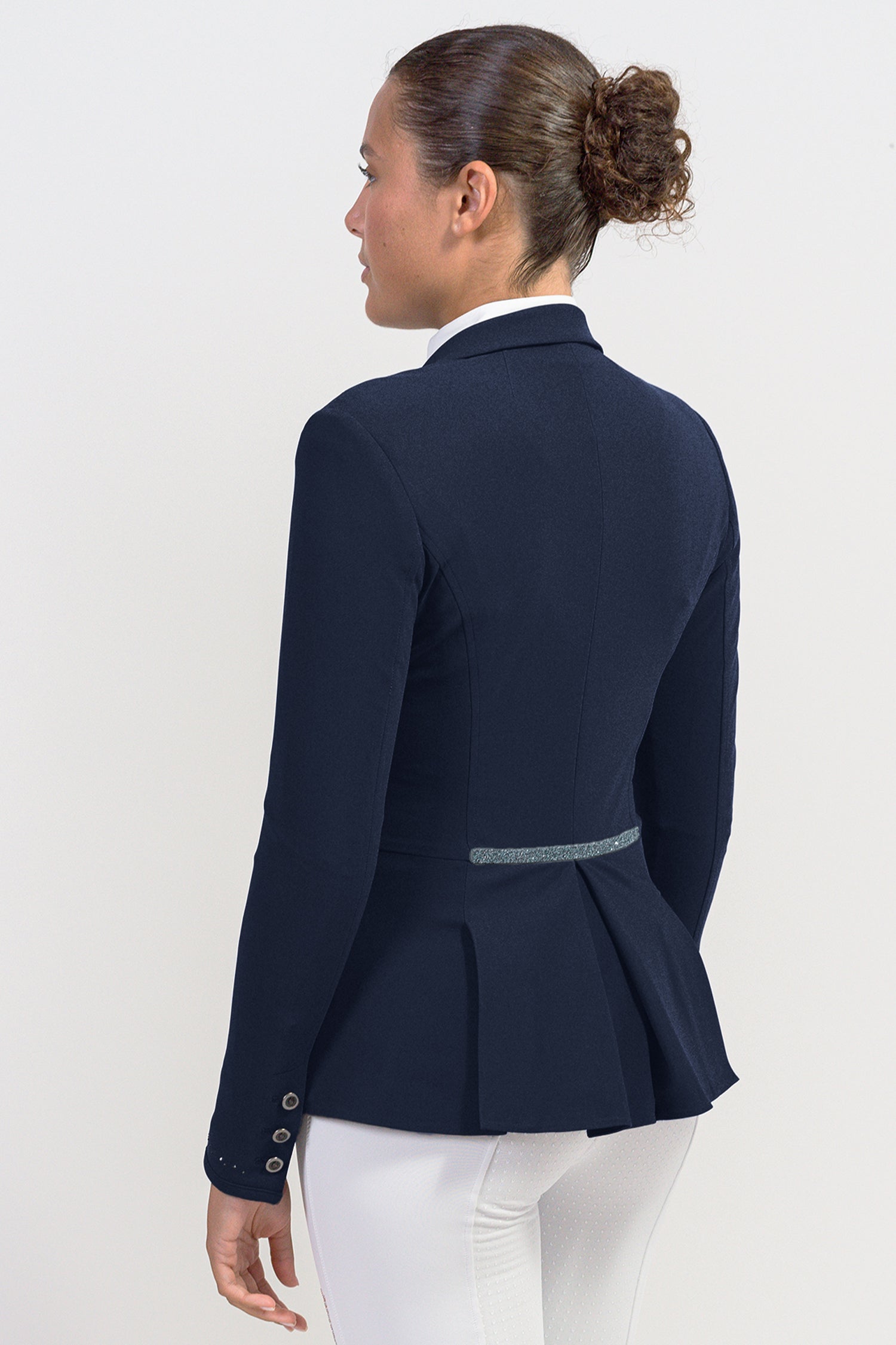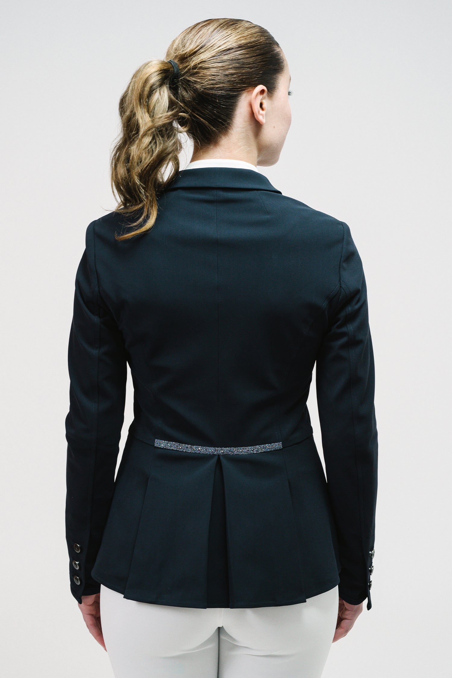 The jacket is designed for the rider's comfort and freedom of movement. The tailored model is sewn slightly shorter in the front, longer in the back, and gives a neat impression.