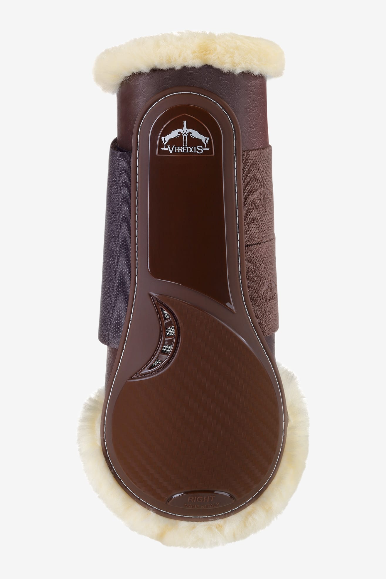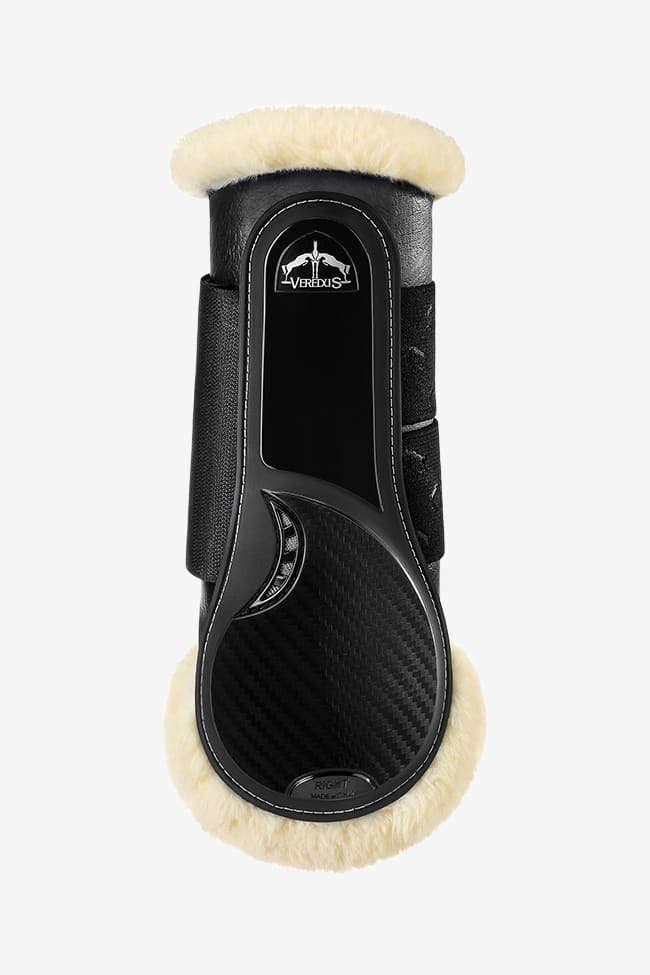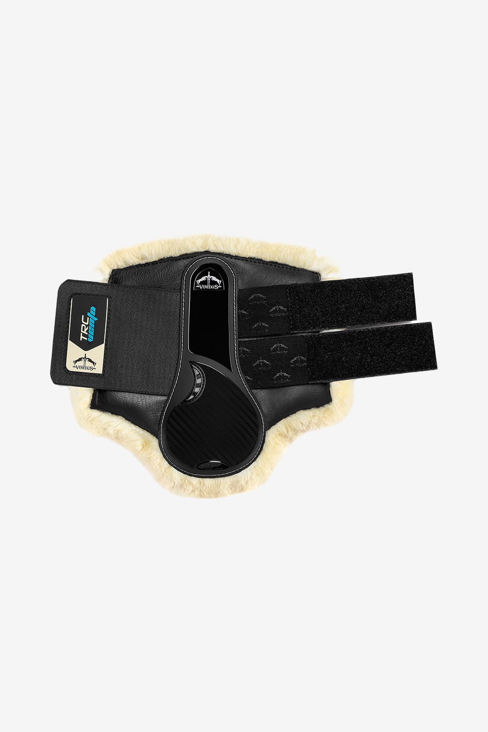 STS TRC Vento Rear High är ett högt bakbensskydd med elastisk rem och dubbel velcro-knäppning. Insidan är i mjuk syntetfårskinn, vilket passar hästar med något känsligare hud och päls.