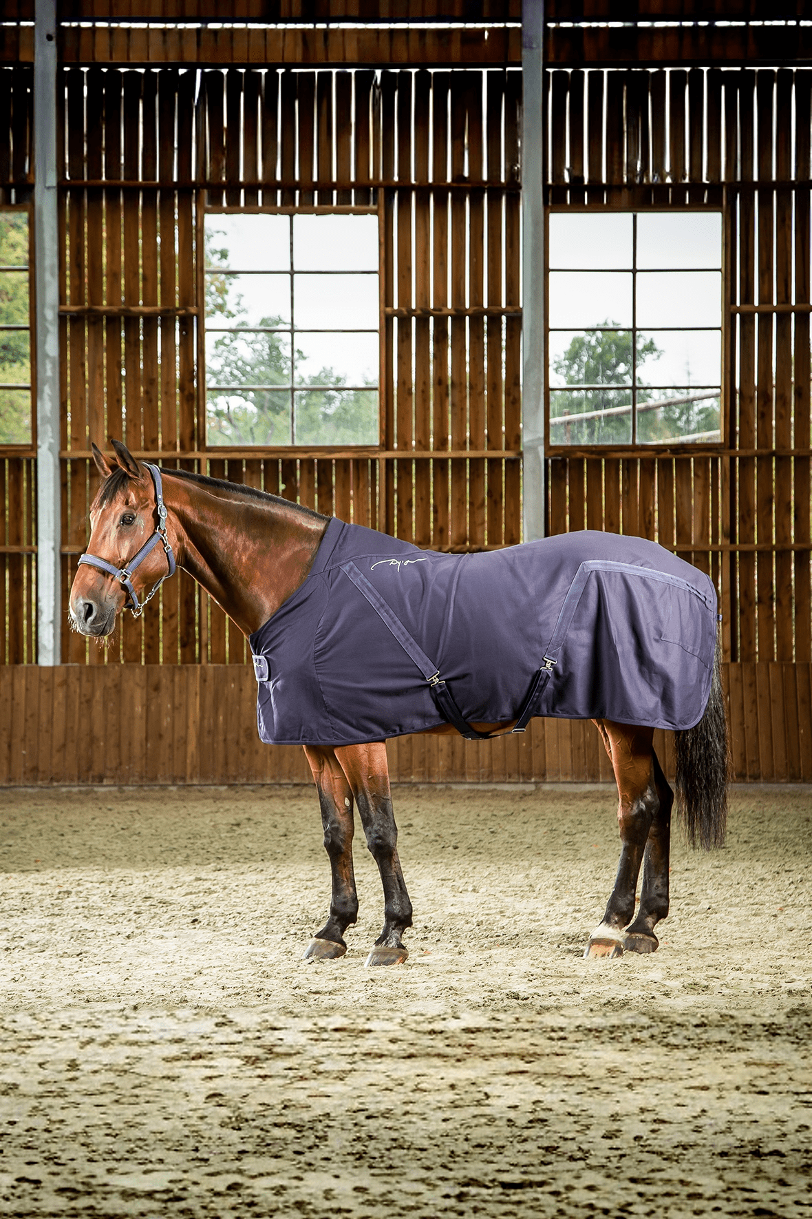 Sangles croisées sous le ventre.