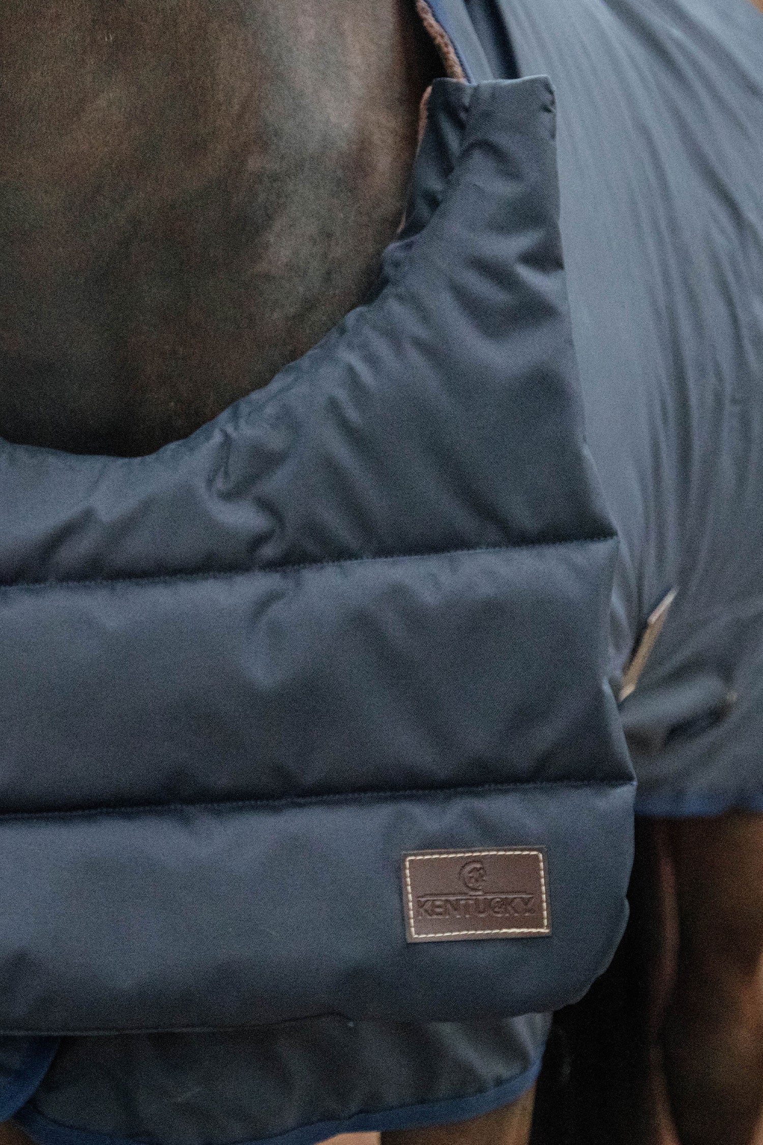 Kentucky a créé un "bib" pratique qui empêche le cheval d'avoir des frottements causés par la couverture et offre un grand confort.