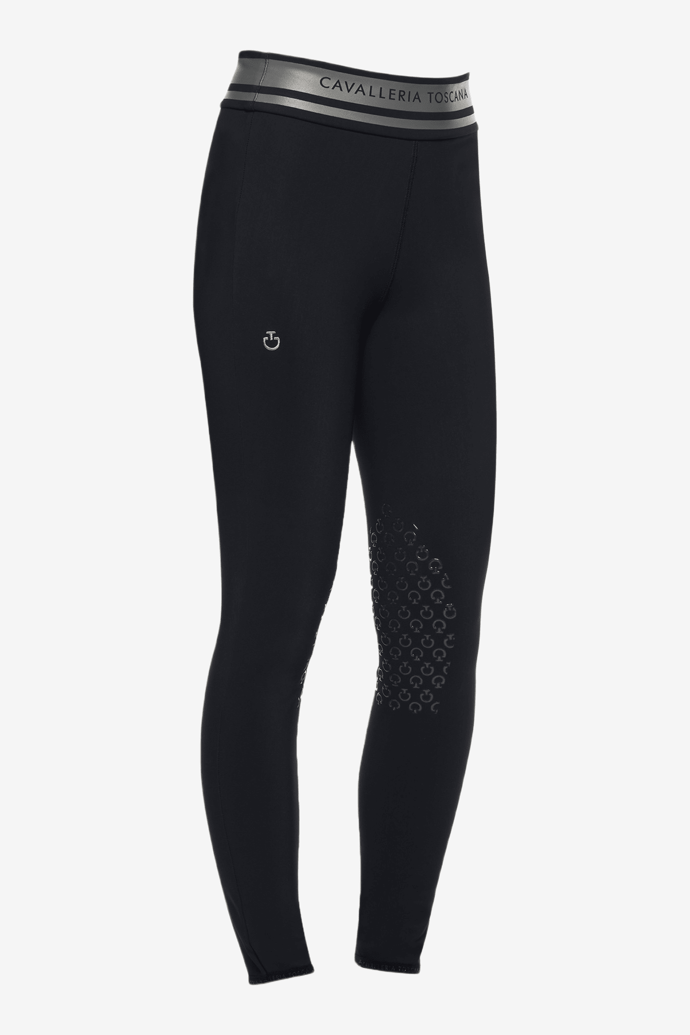 Legging d'équitation tendance et confortable en modèle junior de Cavalleria Toscana. Large ceinture élastique offrant un bon maintien, coloris contrasté avec logo pour une touche supplémentaire au design. Renforts aux genoux avec grip en silicone pour une meilleure stabilité en selle. Logo brodé sur la cuisse gauche.