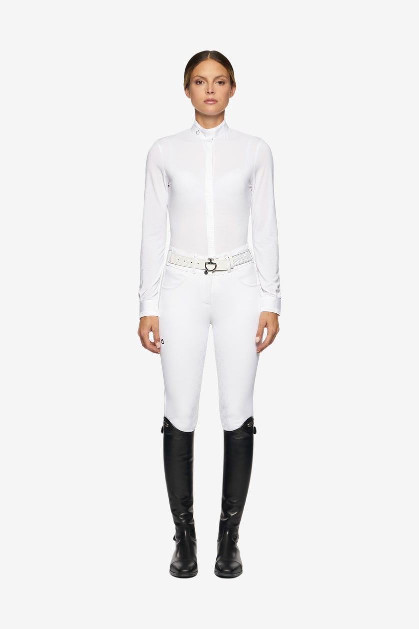 En otroligt snygg tävlingsskjorta från Cavalleria Toscana med lång ärm. Hela skjortan är stretchig och i ett funktionsmaterial som andas och håller dig torr. Kragen har fina detaljer som ger ett lyxigt och stilrent uttryck. Logotyp på kragen.