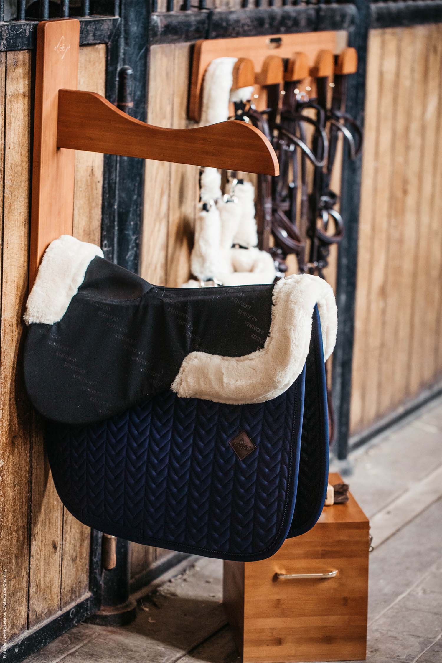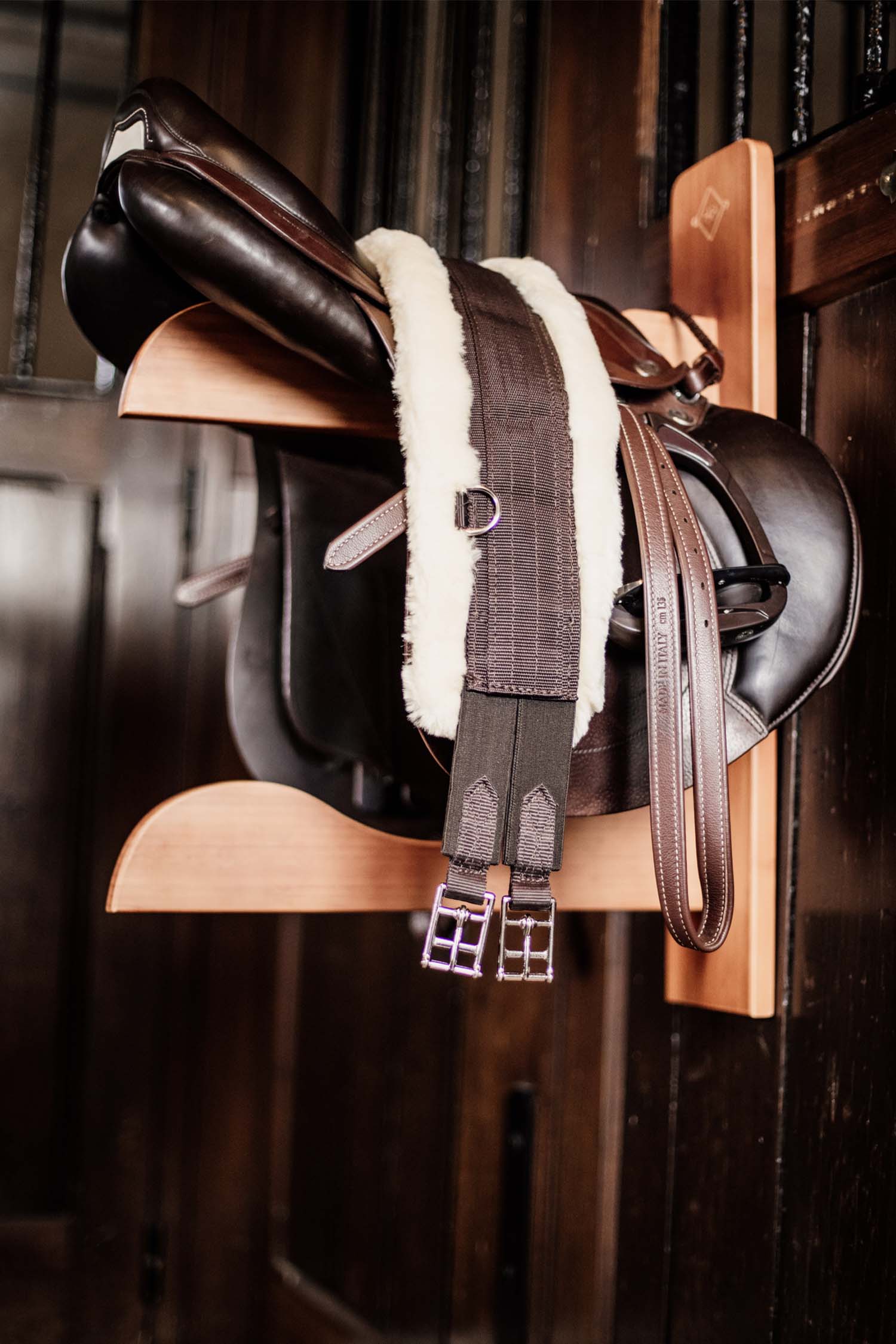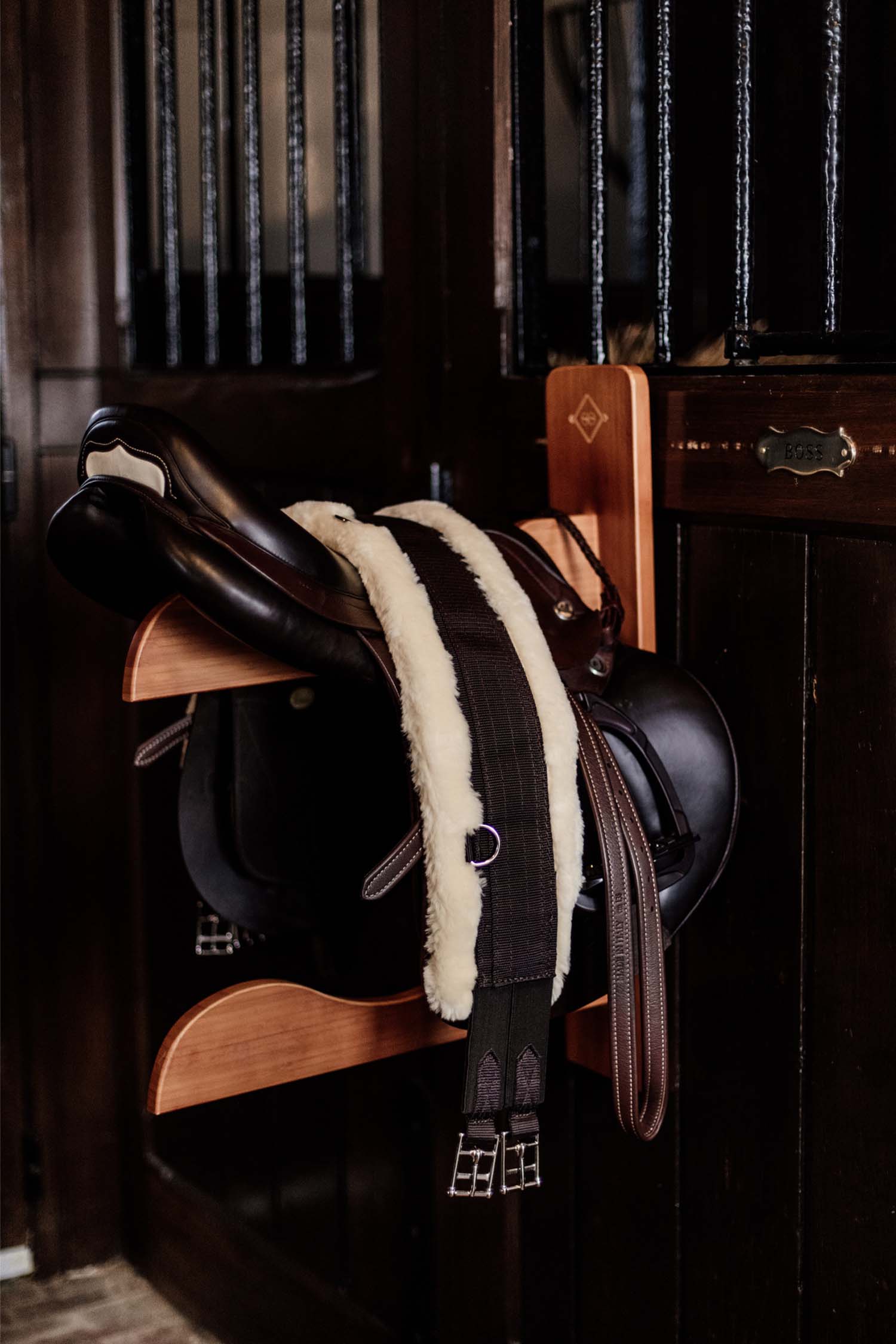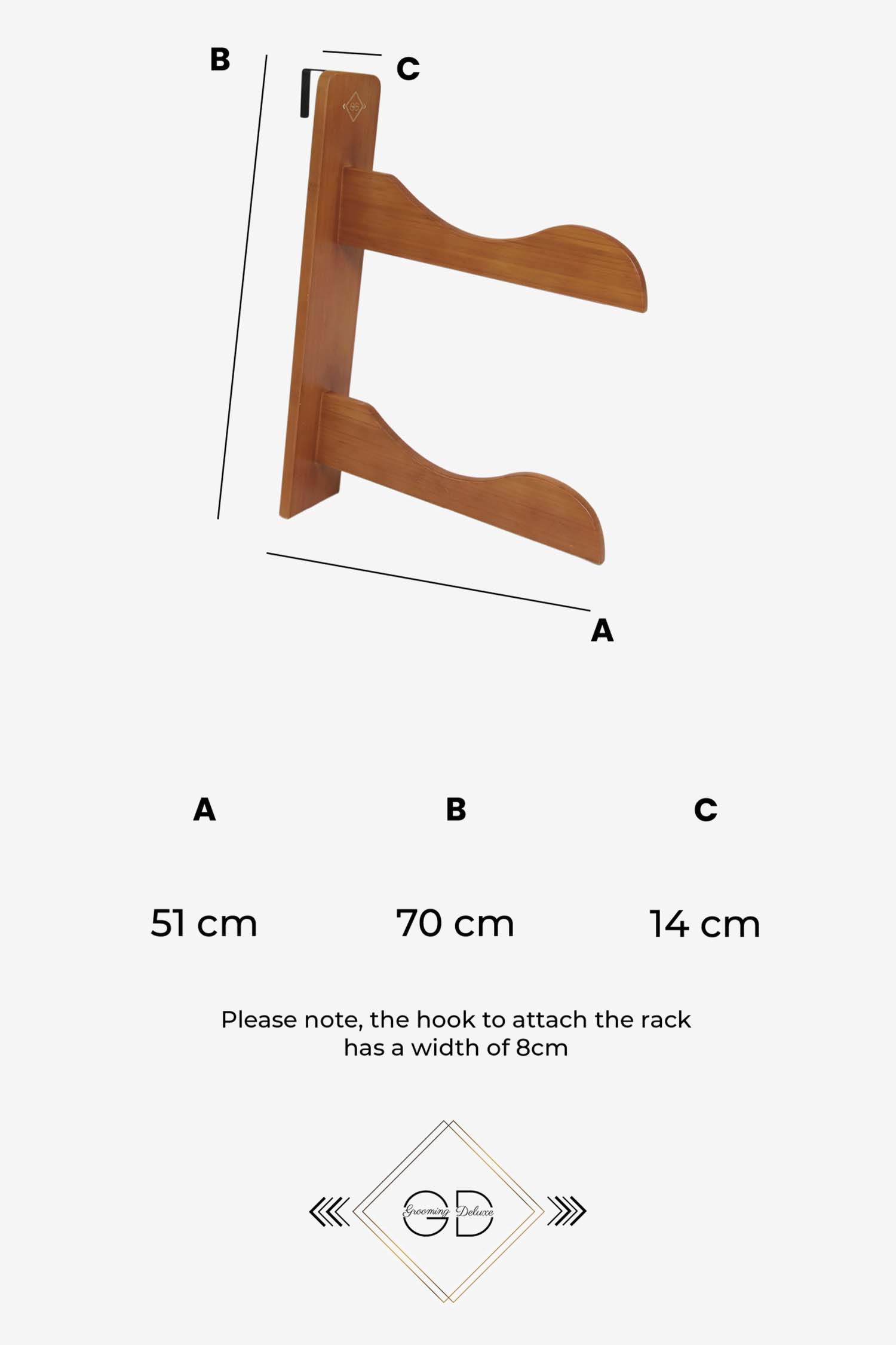 Il offre de la place pour suspendre 2 selles ou d'autres équipements. Facile à accrocher partout grâce au grand crochet à l'arrière. Le logo Grooming Deluxe donne au support une touche d'élégance supplémentaire.