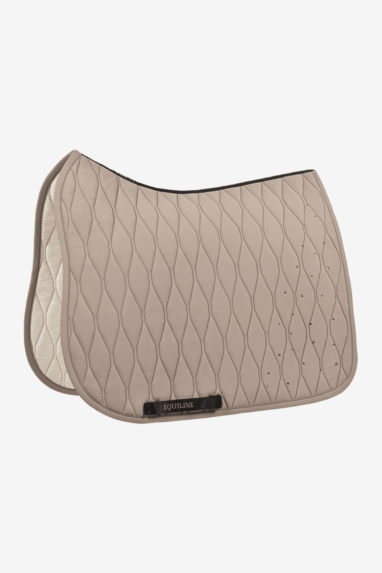 Tapis de selle élégant et exclusif de chez Equiline, orné de strass. Le matériau est extensible et offre une excellente respirabilité. Garnissage antibactérien de 900 g. L'intérieur est en écru non teinté afin d'éviter que les colorants n'entrent en contact avec le cheval. Le choix des matériaux et la composition assurent une très bonne absorption des chocs et une excellente ventilation.