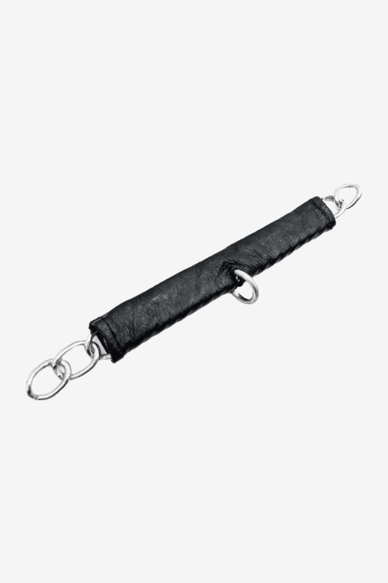 Chaînette de gourmette en acier inoxydable avec protège-chaînette en cuir noir.