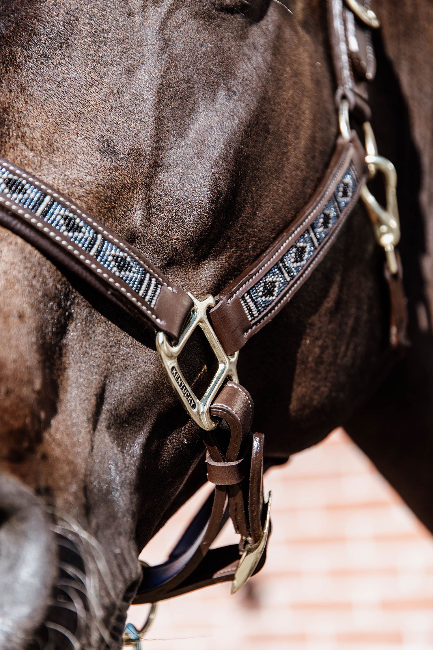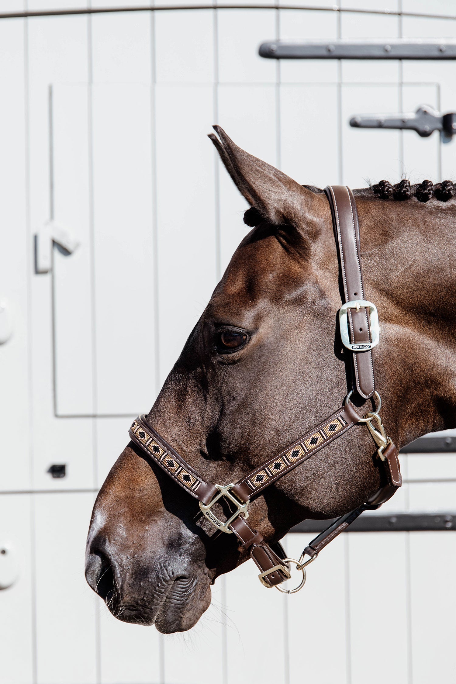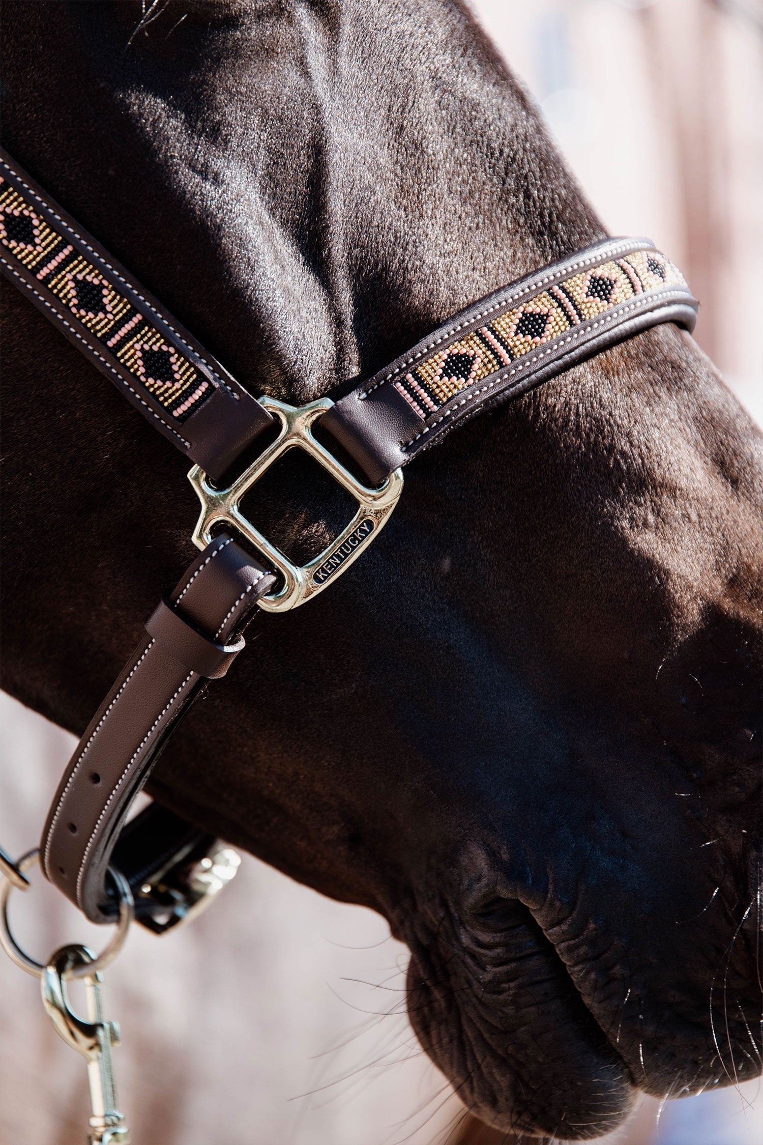Grâce au cuir synthétique, le licol est non seulement 100% respectueux des animaux, mais aussi très durable et facile à entretenir. Il suffit d'essuyer le licol avec le Nettoyant pour équipement Kentucky si nécessaire, sans craindre qu'il ne perde sa couleur ou ne devienne rigide. Pour nettoyer les perles, utilisez un chiffon humide.