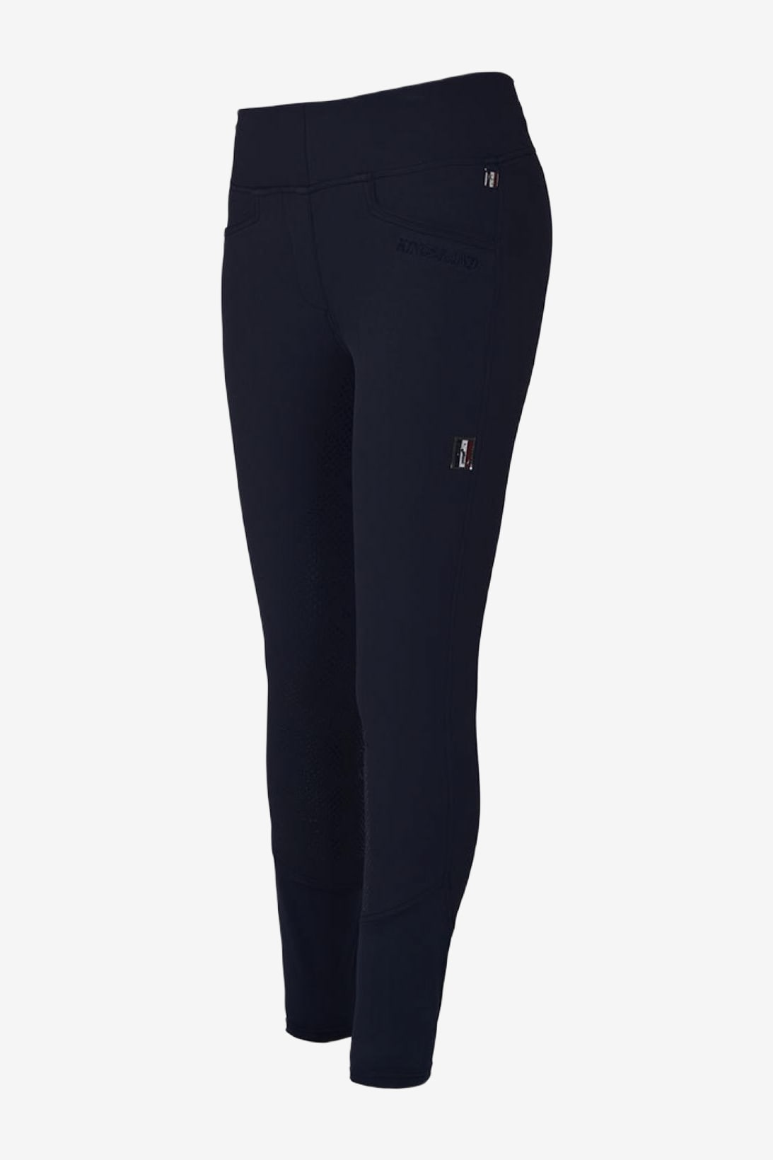 Collant d'équitation full seat pour femme de Kingsland. Pas de boutons ni de fermeture éclair, simplement un pantalon d'équitation à enfiler. Ceinture extra large pour un confort et un maintien optimal.