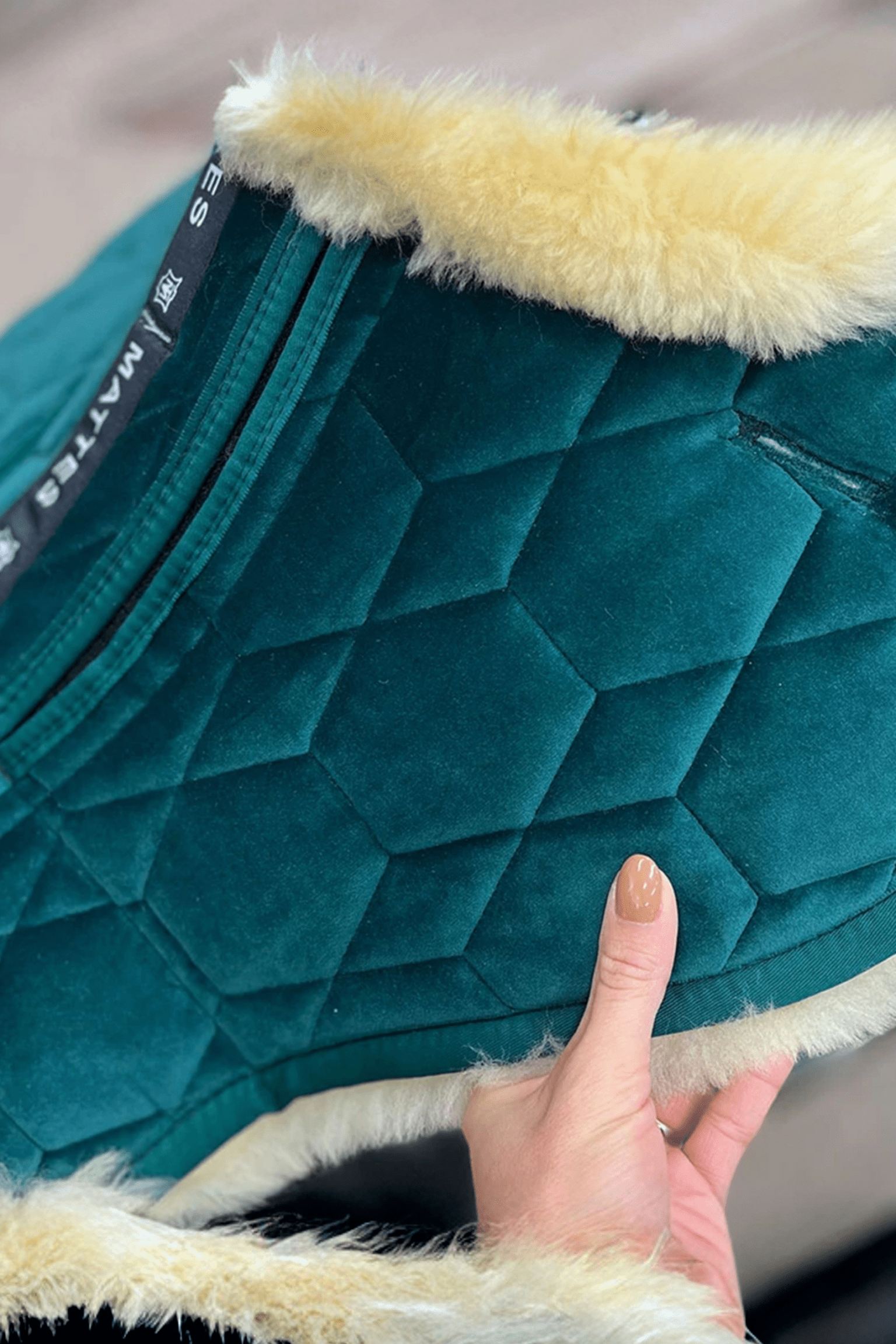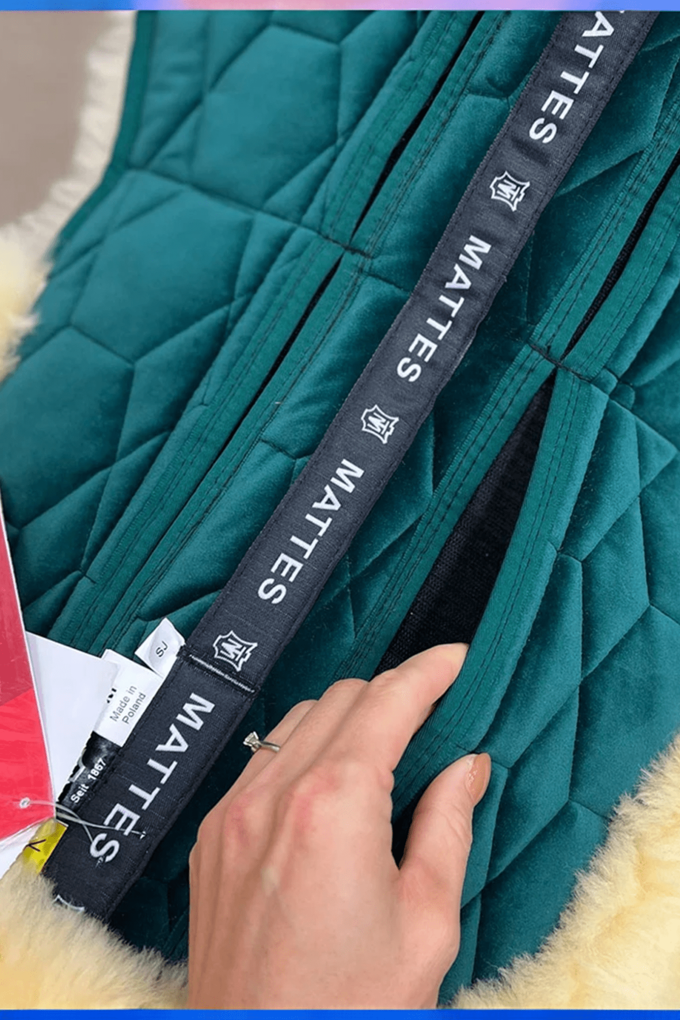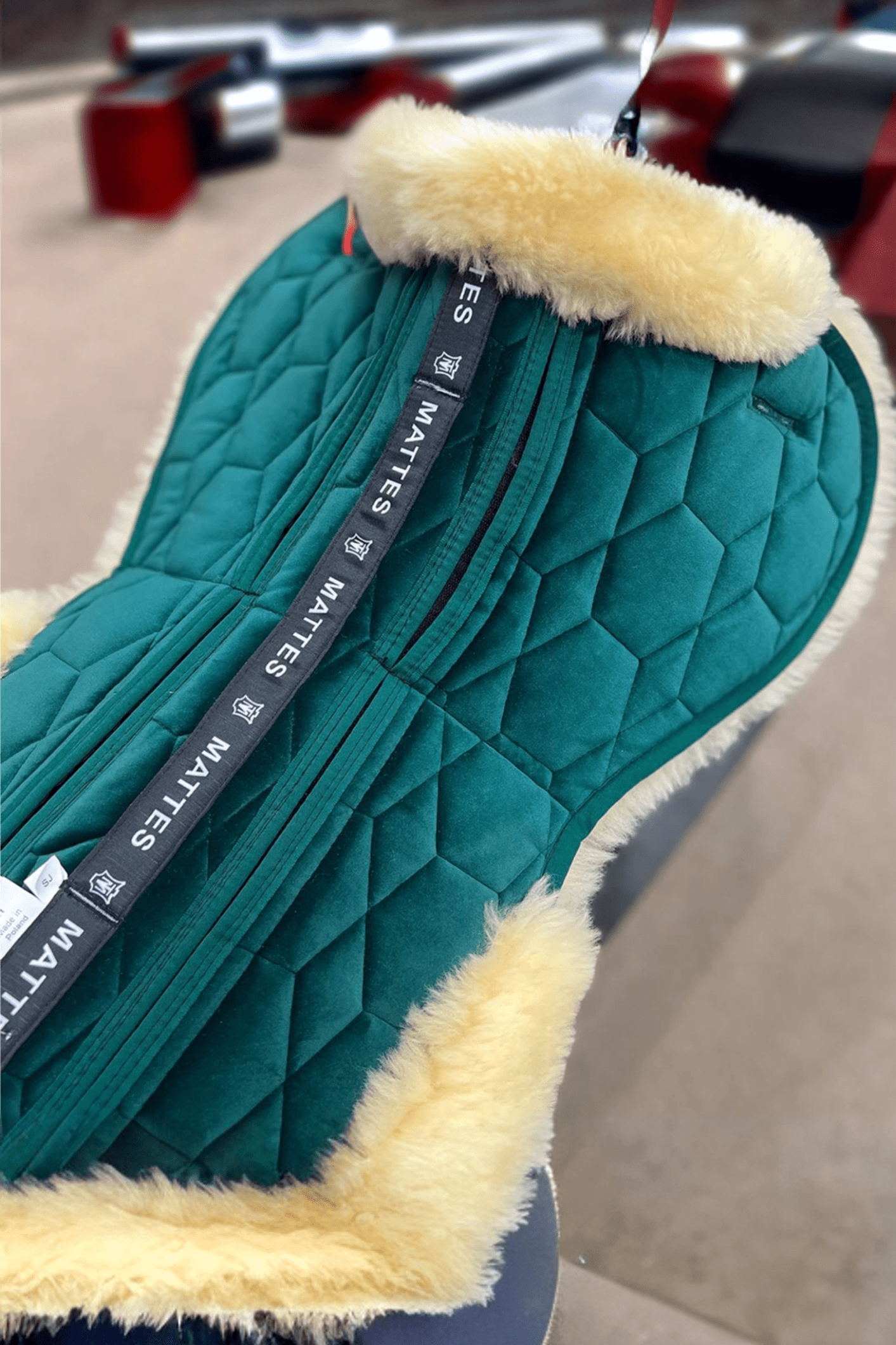 Fårskinnspad med fantastisk passform och sammetsyta. Extra tjock och fluffig av äkta fårskinn, med uppvikt kant och bred ryggkanal vilket eliminerar eventuella problem med tryck i ryggradsområdet. Tillhörande filtbitar medföljer för att kunna justera padden efter hästens egen form. Hjälper att fylla i där hästen själv t.ex saknar muskler för tillfället.