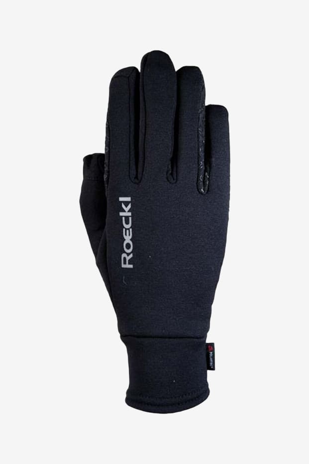Le gant est fabriqué en Power Stretch® Pro chaud et doux de Polartec, dans une qualité légèrement plus épaisse qui vous garde au chaud. La paume comporte d'innombrables petits logos en silicone Rockel-hand pour offrir une bonne prise sur la rêne. La zone entre l'auriculaire et l'annulaire, qui est la plus en contact avec la rêne, est renforcée par du silicone supplémentaire. Le logo sur le dessus du gant est en matériau réfléchissant. Roeckl utilise la mesure française Pounce, un Pounce équivalant à 2,7 cm. Pour connaître votre taille, mesurez simplement la circonférence de votre main (voir image ci-dessous) et divisez par 2,7. Veuillez noter que les mesures indiquées ne sont qu'une indication.