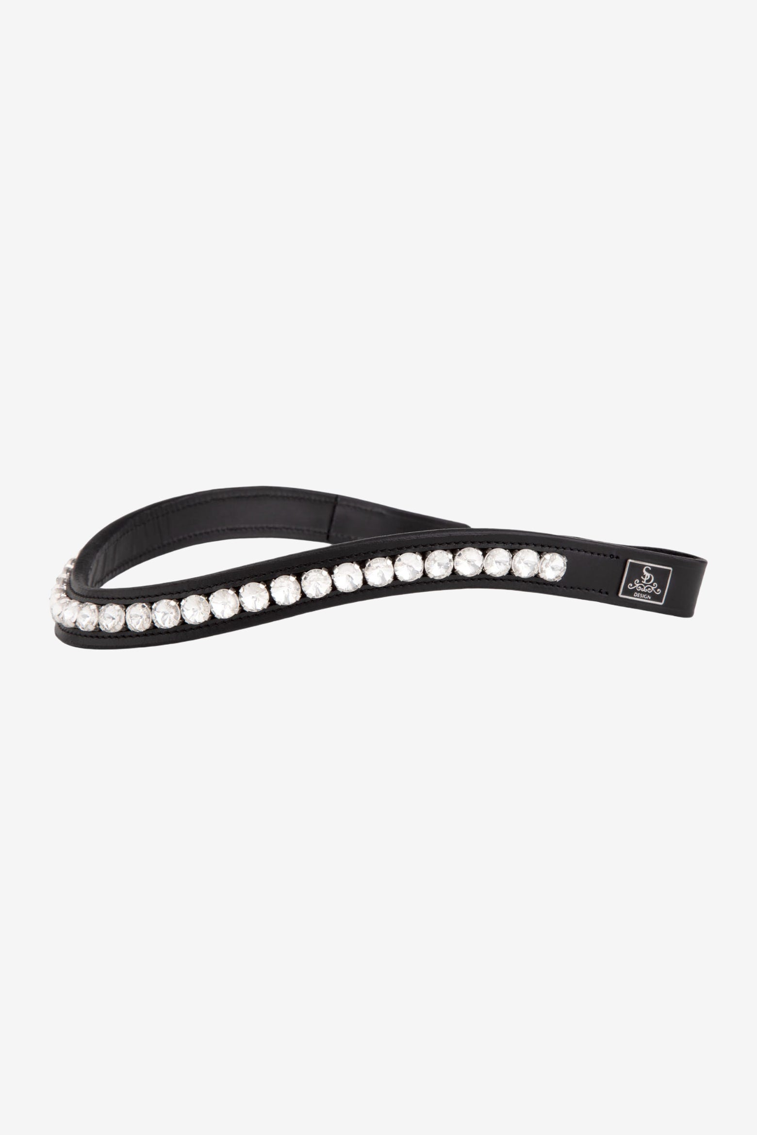 Zwarte frontriem met witte kristallen van SD Design.