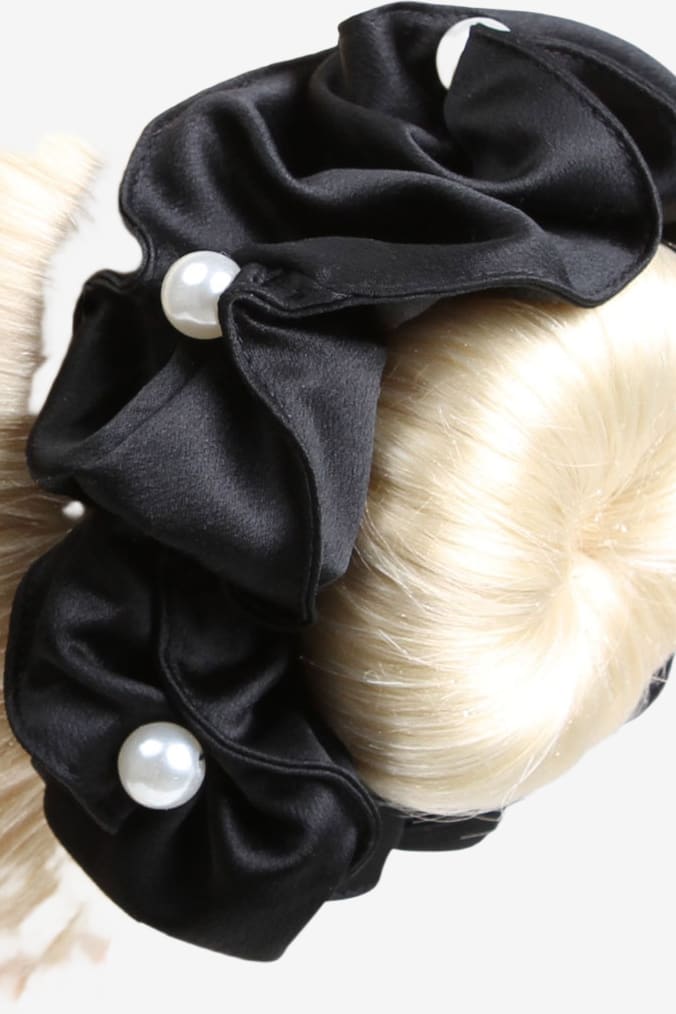 Super fijne haarband om aan de dressuurknot te bevestigen. Mooi satijnen band met grote decoratieve parels en een elastische band die ervoor zorgt dat de band stevig op zijn plaats blijft zitten.