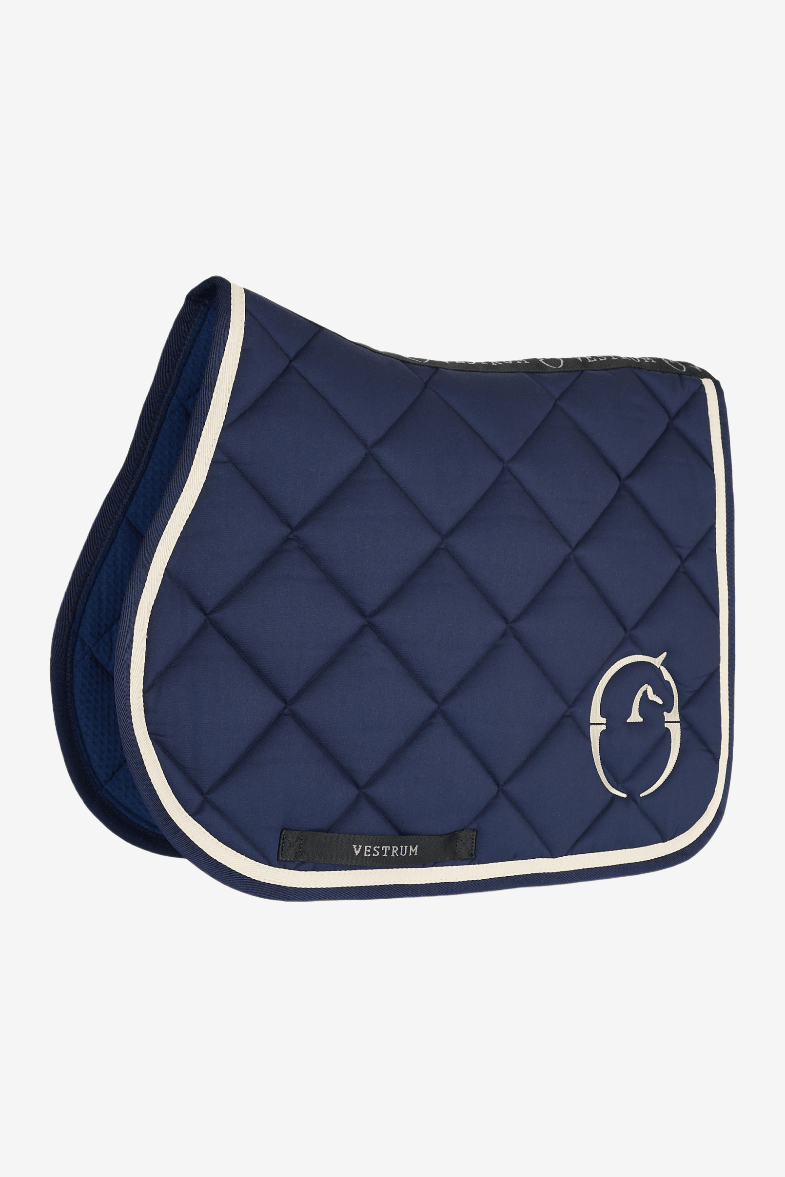 Rapallo is gemaakt van gewatteerde stretchstoffen en de binnenkant is van 100% katoen met een zeer goede structuur om een zachte grip op de paardenrug te garanderen. Het zadeldek is voorzien van een label in Vestrum-schrift aan beide zijden en een logo, op één zijde genaaid in glanzend polyester.