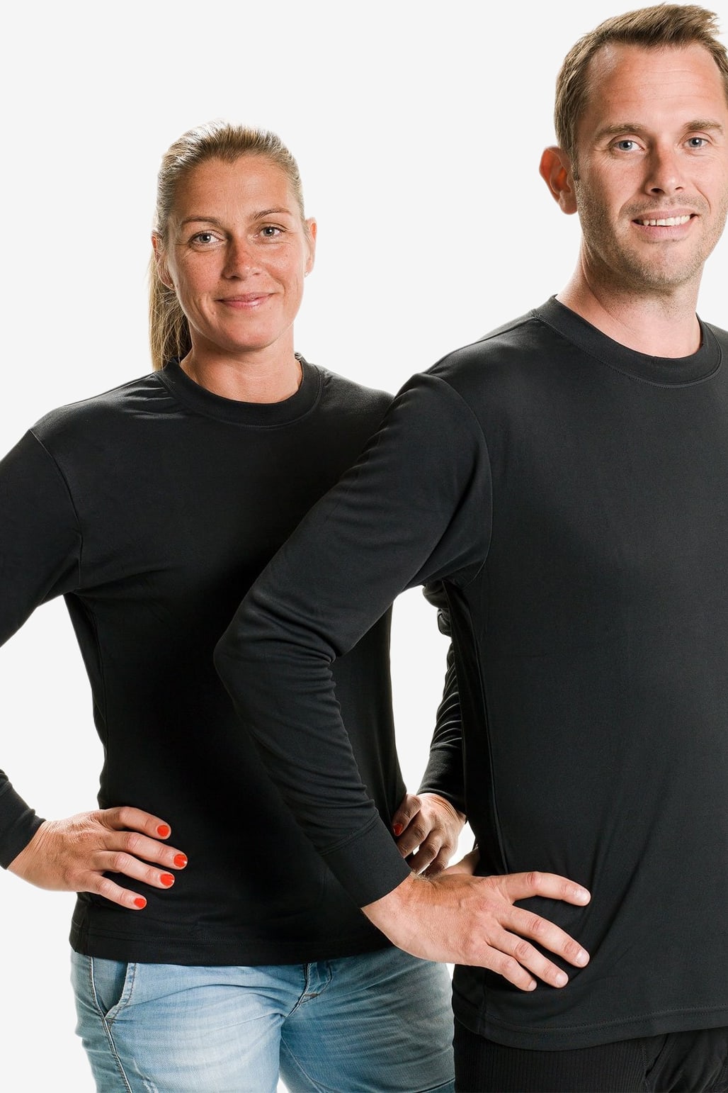Enkel och bekväm tröja för både dam och herr, tillverkad i ett material som effektivt transporterar bort fukt och svett från huden. Tröjan håller dig torr och bekväm under högintensiva aktiviteter, som längdskidåkning, löpning och ridning.