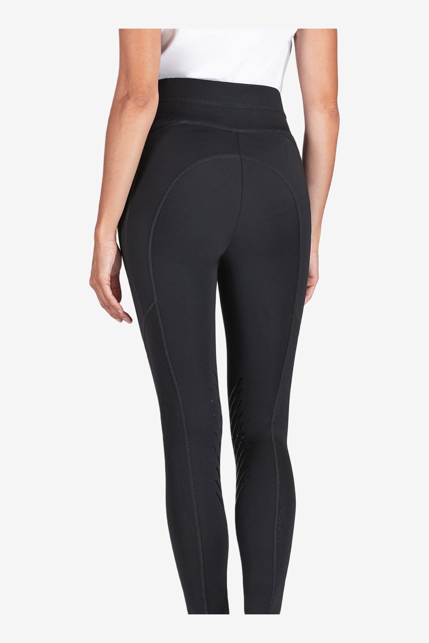 Rijleggings in navy van Equiline. Ben je op zoek naar het perfecte paar rijleggings met kniestukken, die stijlvol, middelzwaar en super comfortabel zijn? Dan heb je ze gevonden. Cerink, zoals alle Equiline kleding, is ontworpen om maximale bewegingsvrijheid en comfort te bieden. Deze rijleggings hebben een praktische zak op het rechterbeen. Het geperforeerde materiaal aan de zijkant is zowel stijlvol als functioneel. De tights zijn voorzien van het Equiline-logo op één been en Equiline-patroon op de benen en taille. Het symbool “X-Grip” staat voor uitzonderlijke grip.