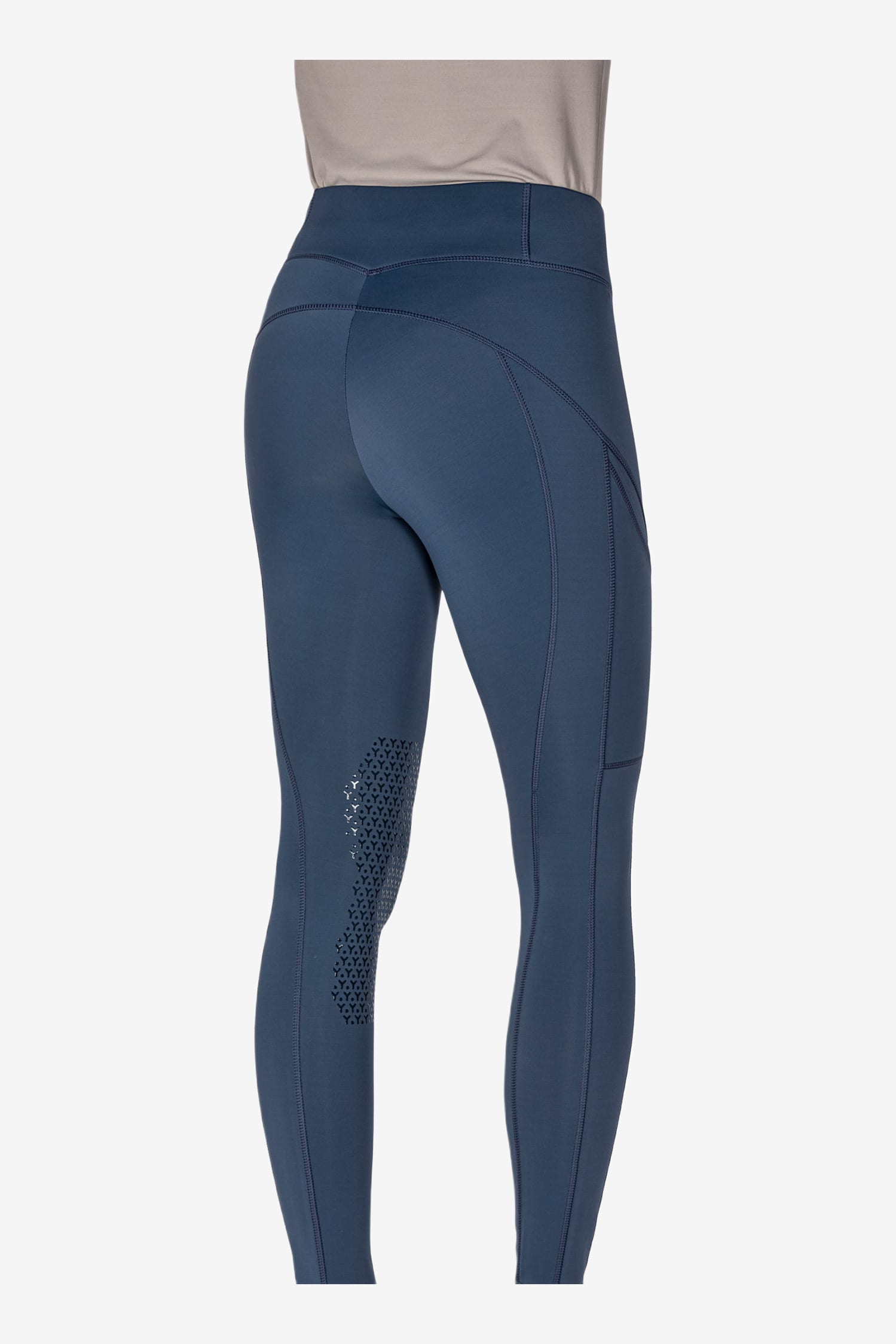 Rijleggings met kniestukken in beige. Comfortabele rijleggings van Equiline met kniestukken van stretch en ademend materiaal voor extra comfort en sneldrogend. De broek is voorzien van een handig telefoonzakje en het Equiline-logo aan de zijkant van het been.