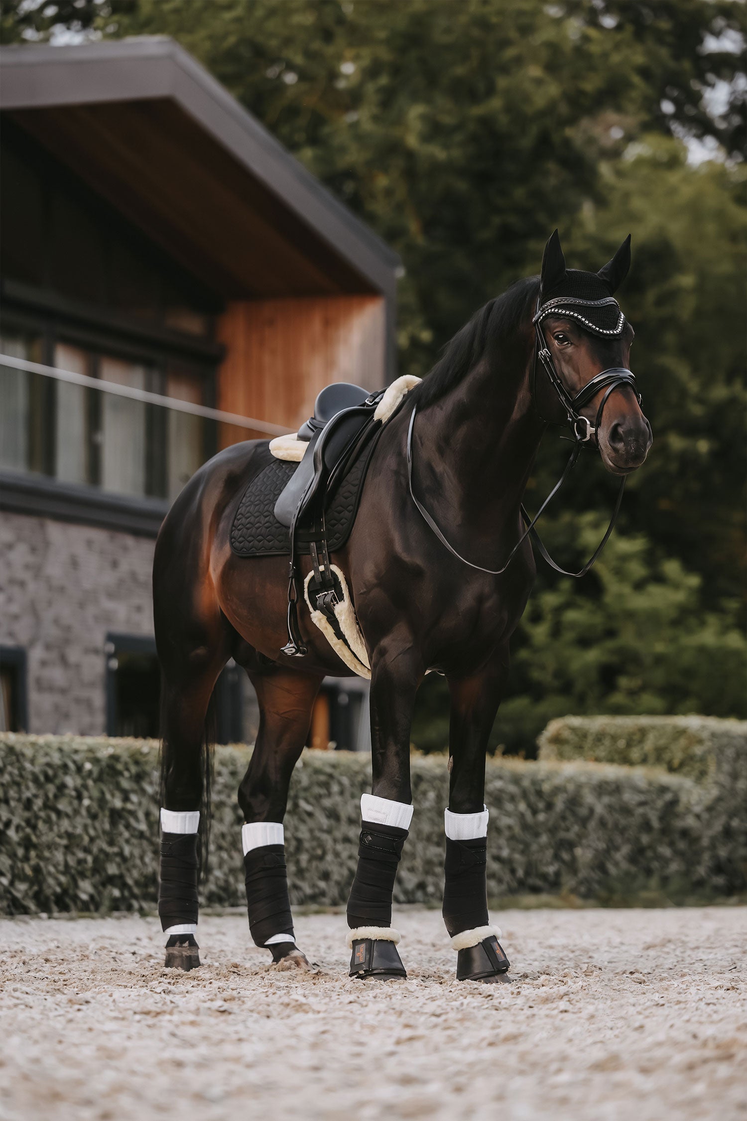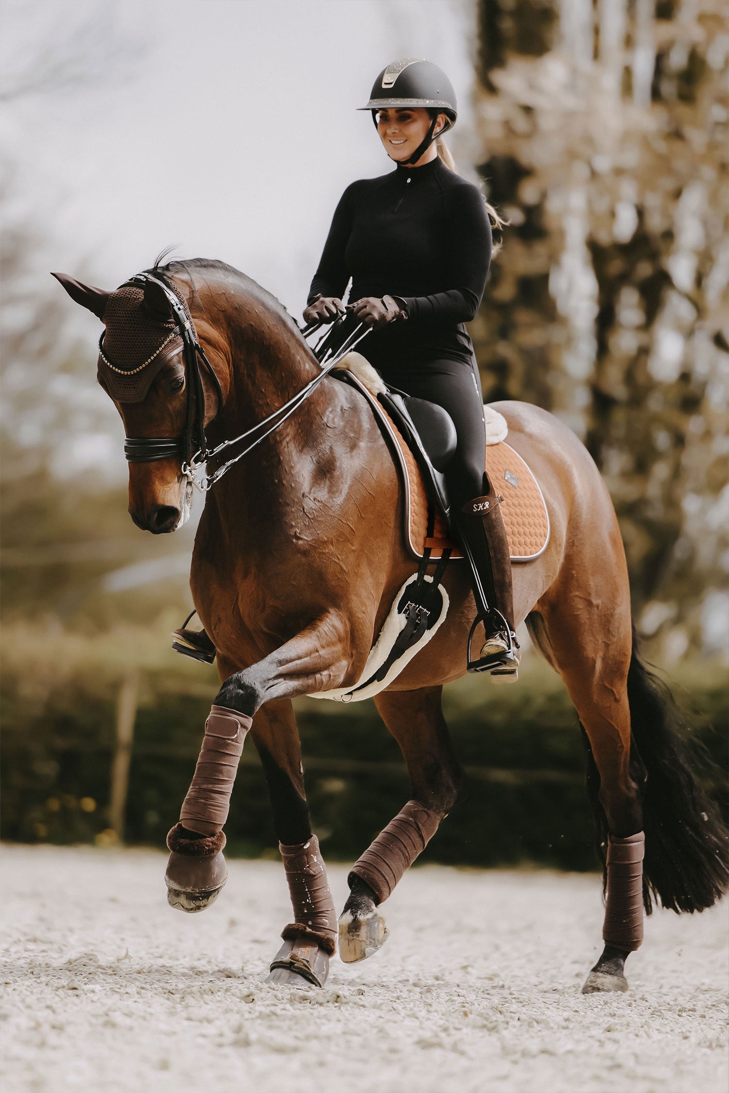 Een comfortabele dressuursingel met kunstlamsvel die extra comfort biedt voor het paard.
