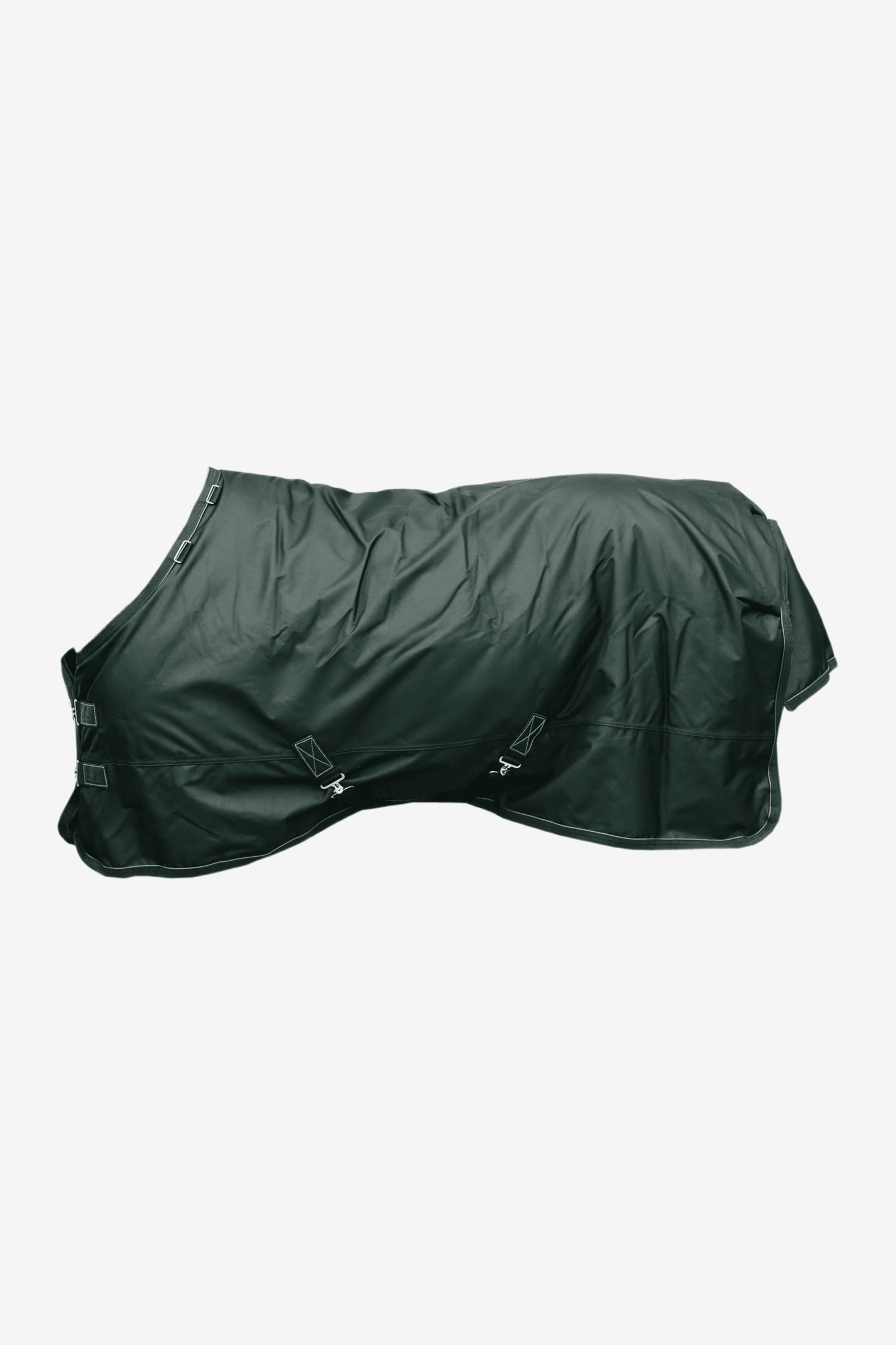 De deken heeft twee klassieke voorsluitingen in combinatie met een sterke klittenbandsluiting, twee kruissingels en een elastische, afneembare bilkoord met plastic bescherming (voor eenvoudige reiniging).