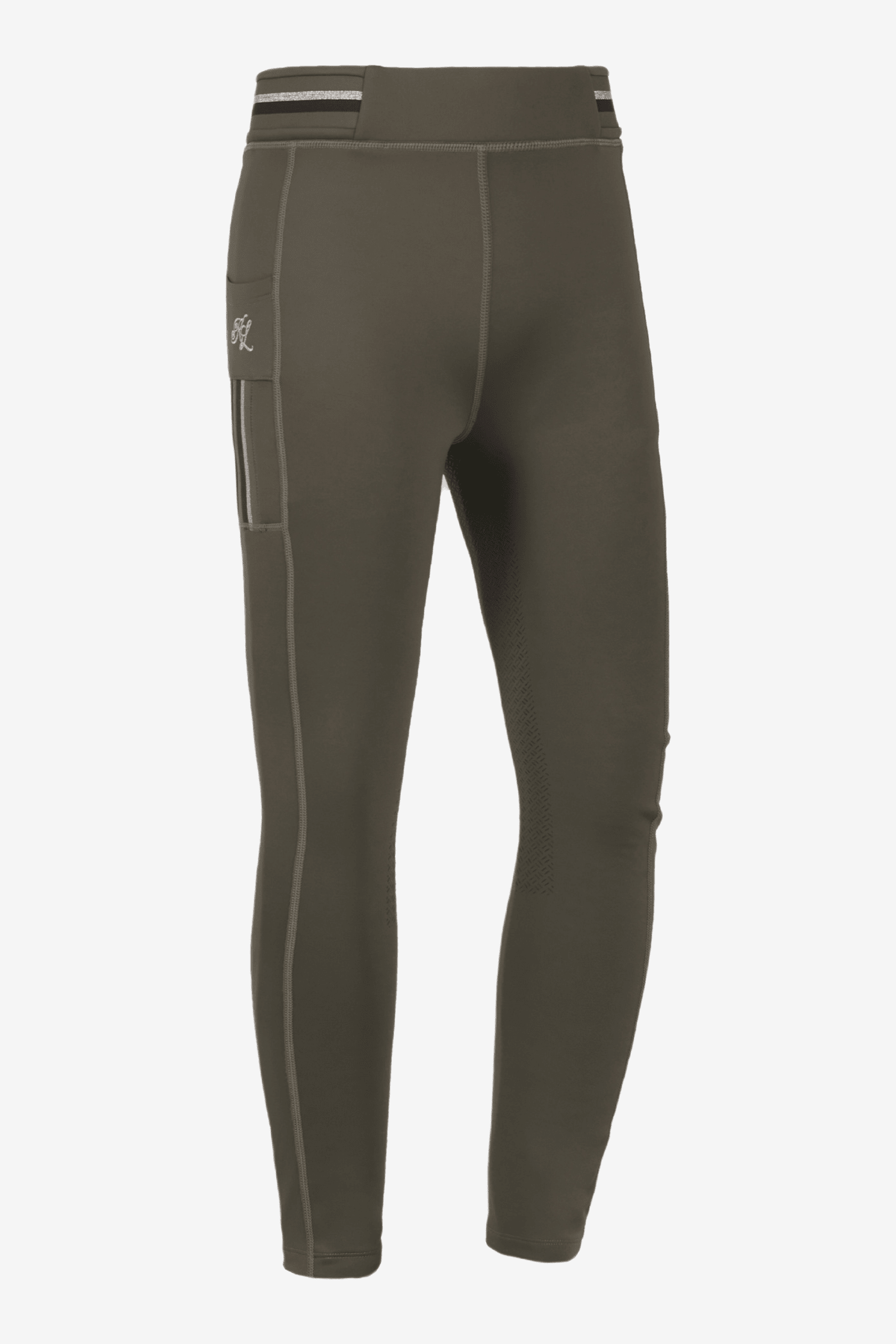 Het telefoonzakje op het dijbeen is niet alleen functioneel, maar is ook versierd met Kingslands kenmerkende logo borduursel en prachtig afgewerkt met fonkelende kristallen. Hetzelfde logoborduursel met kristallen vind je ook op de tailleband.