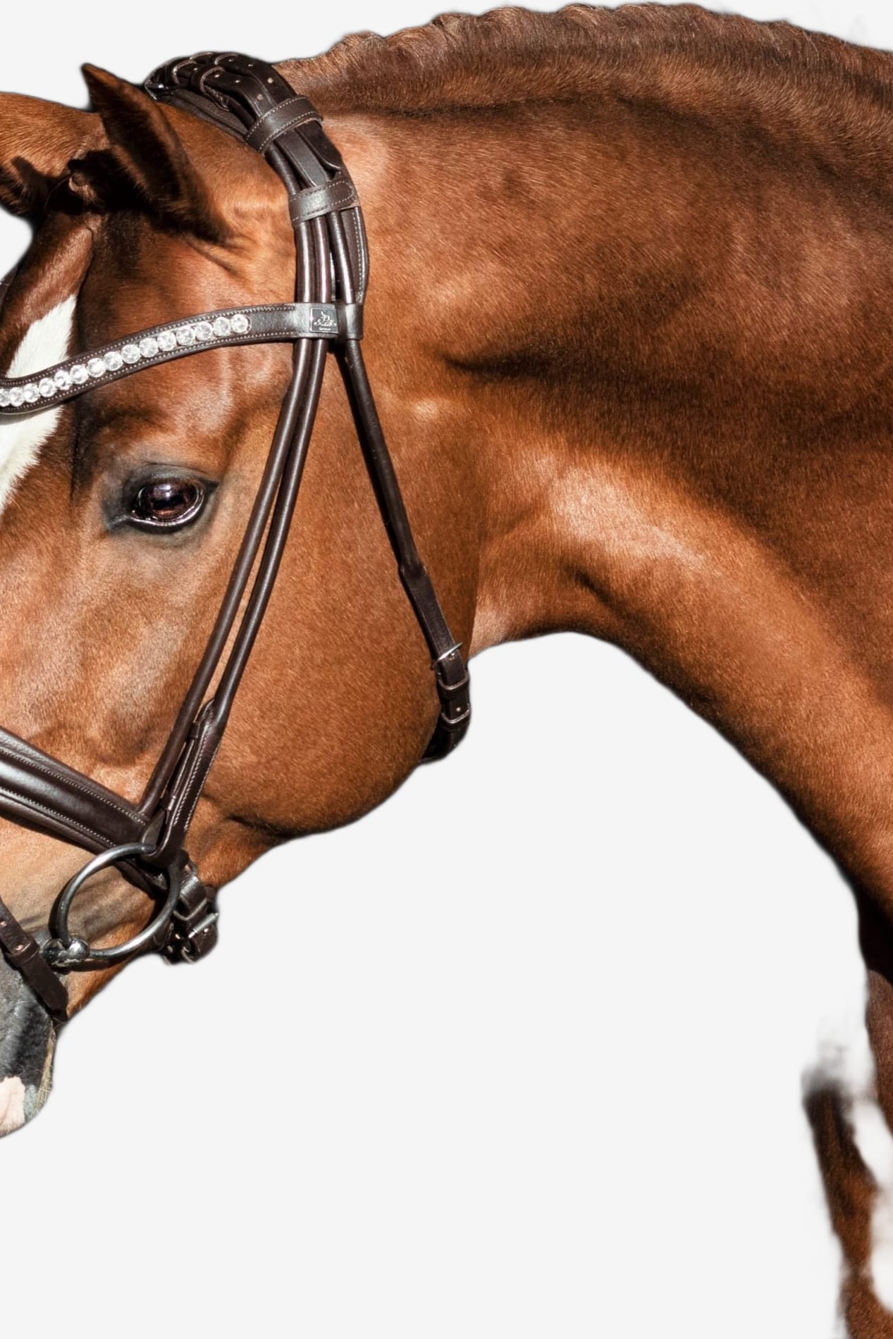 Het kopstuk van dit model heeft een volledig nieuwe vorm die minder druk uitoefent op de gevoelige zenuwen van het paard en zorgt voor een comfortabelere pasvorm.