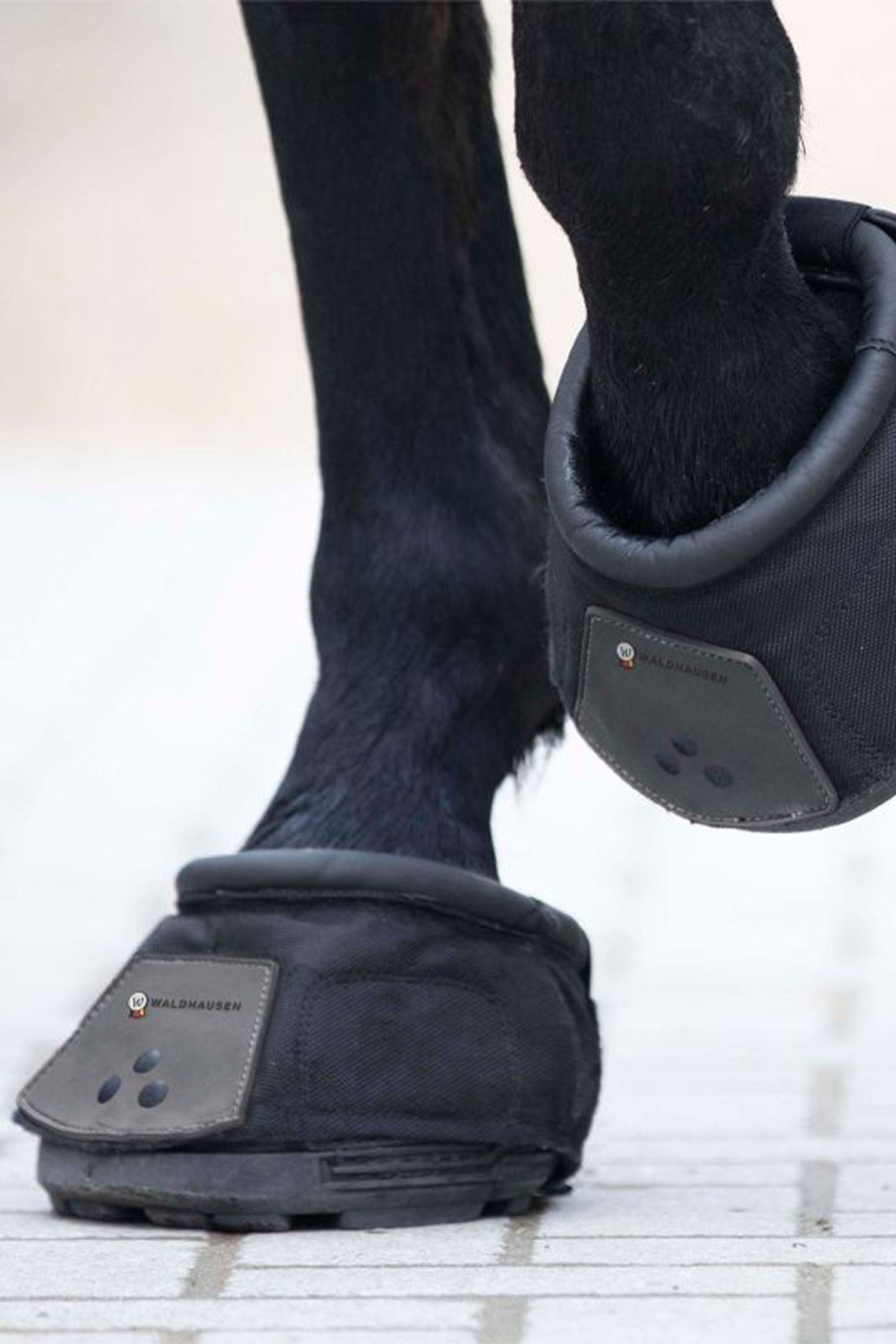 De schoen opent aan de achterkant met flappen die vervolgens rondom de hoef worden gesloten, waardoor hij zeer gemakkelijk aan te trekken is. De zachte demping maakt de schoen comfortabel voor het paard en is zacht en flexibel gevormd rond de kroonrand.
