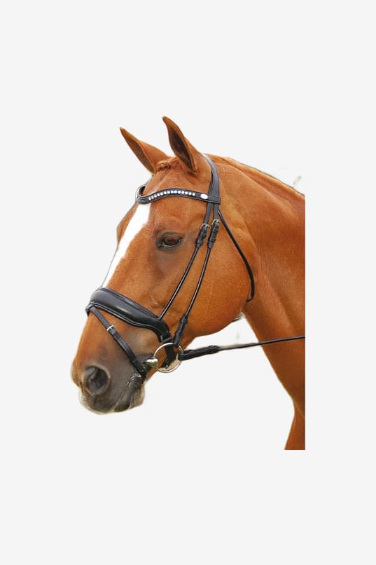 Rondgenaaid dressuurhoofdstel van fijn Engels leer.