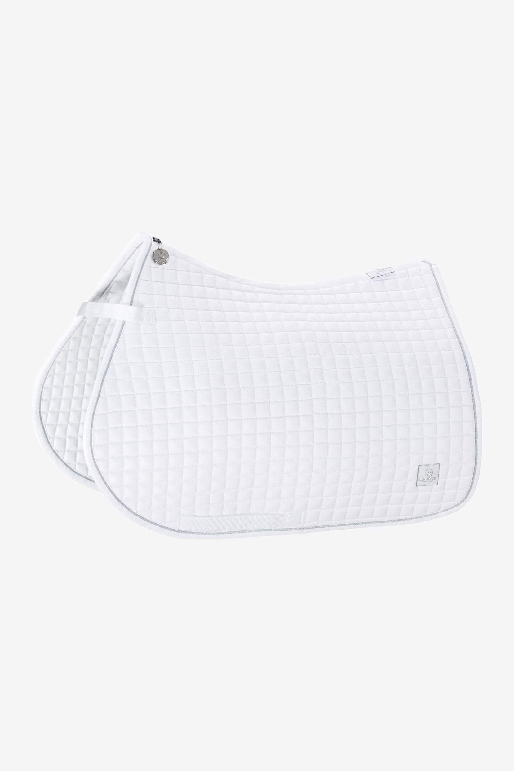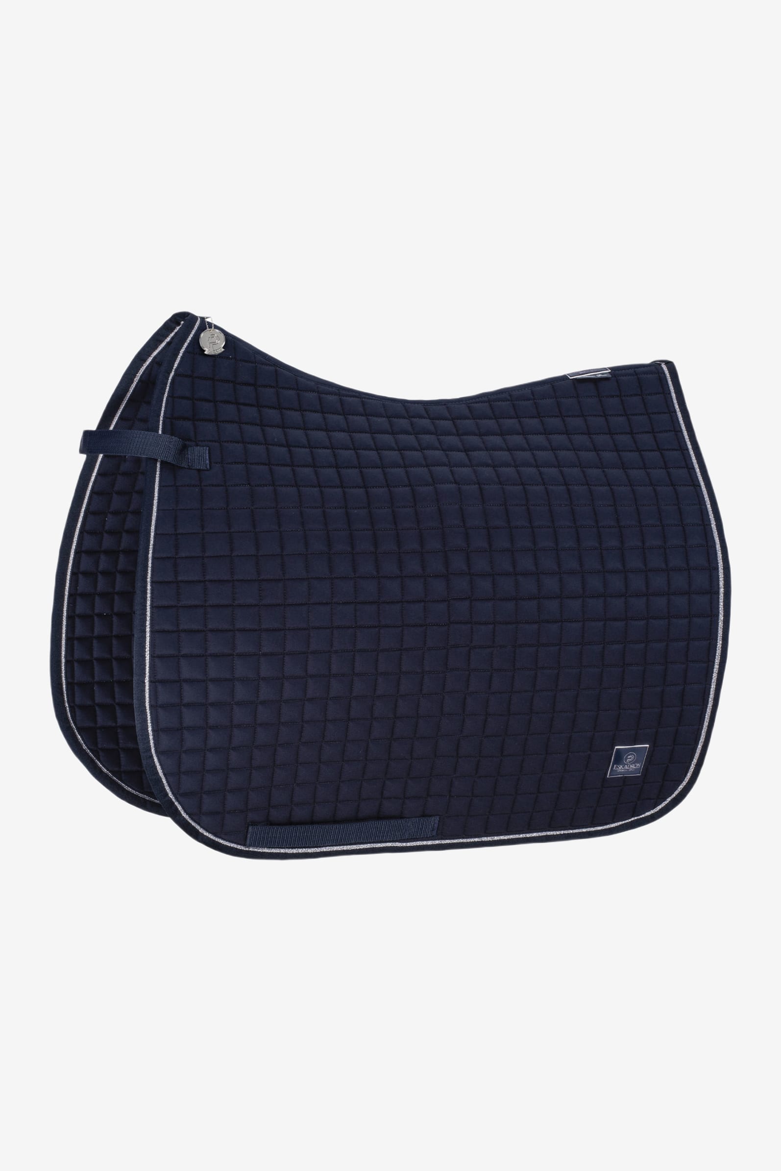 Eenvoudig en stijlvol zadeldek in het klassieke katoenen model van Eskadron. Zilverkleurige bies langs de rand en een logo in sprankelend zilver aan de zijkant. Dun en zacht zonder stevigheid en stabiliteit te verliezen. Het perfecte zadeldek voor zowel dagelijks gebruik als wedstrijden!