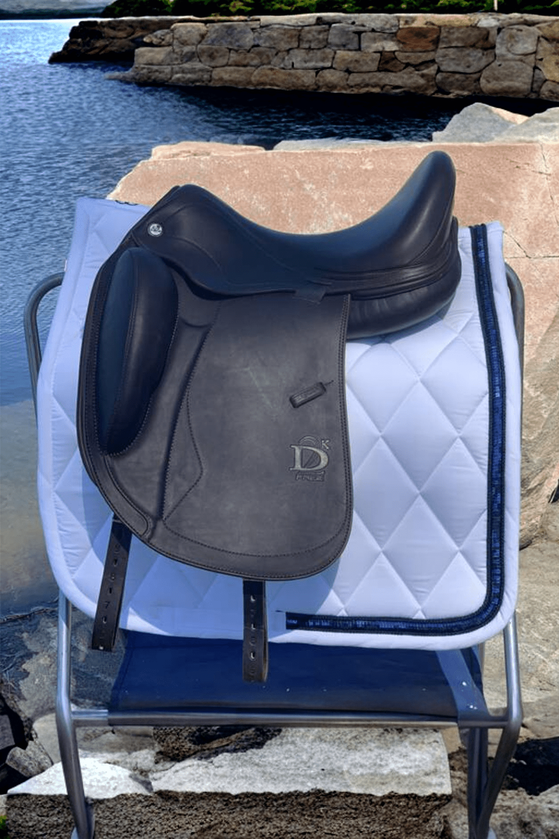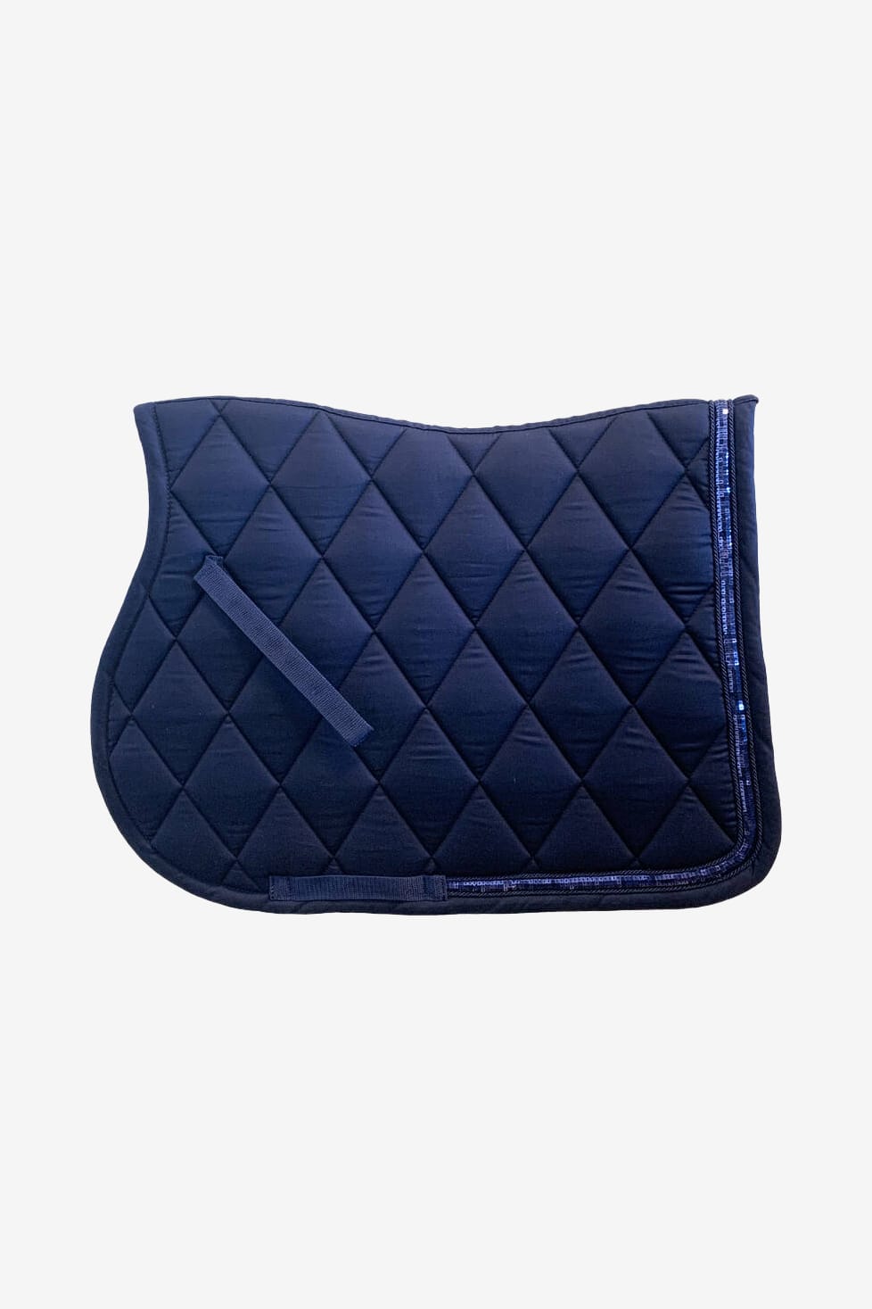 Zadeldek met grote, ruitvormige stiksels. Brede rand van pailletten die schitteren in een blauw/paarse tint met een smalle bies aan beide zijden. Met een buitenmateriaal van 100% katoen biedt het zadeldek een zacht gevoel. Voering van polyester en een zachte vulling van poly-fill.